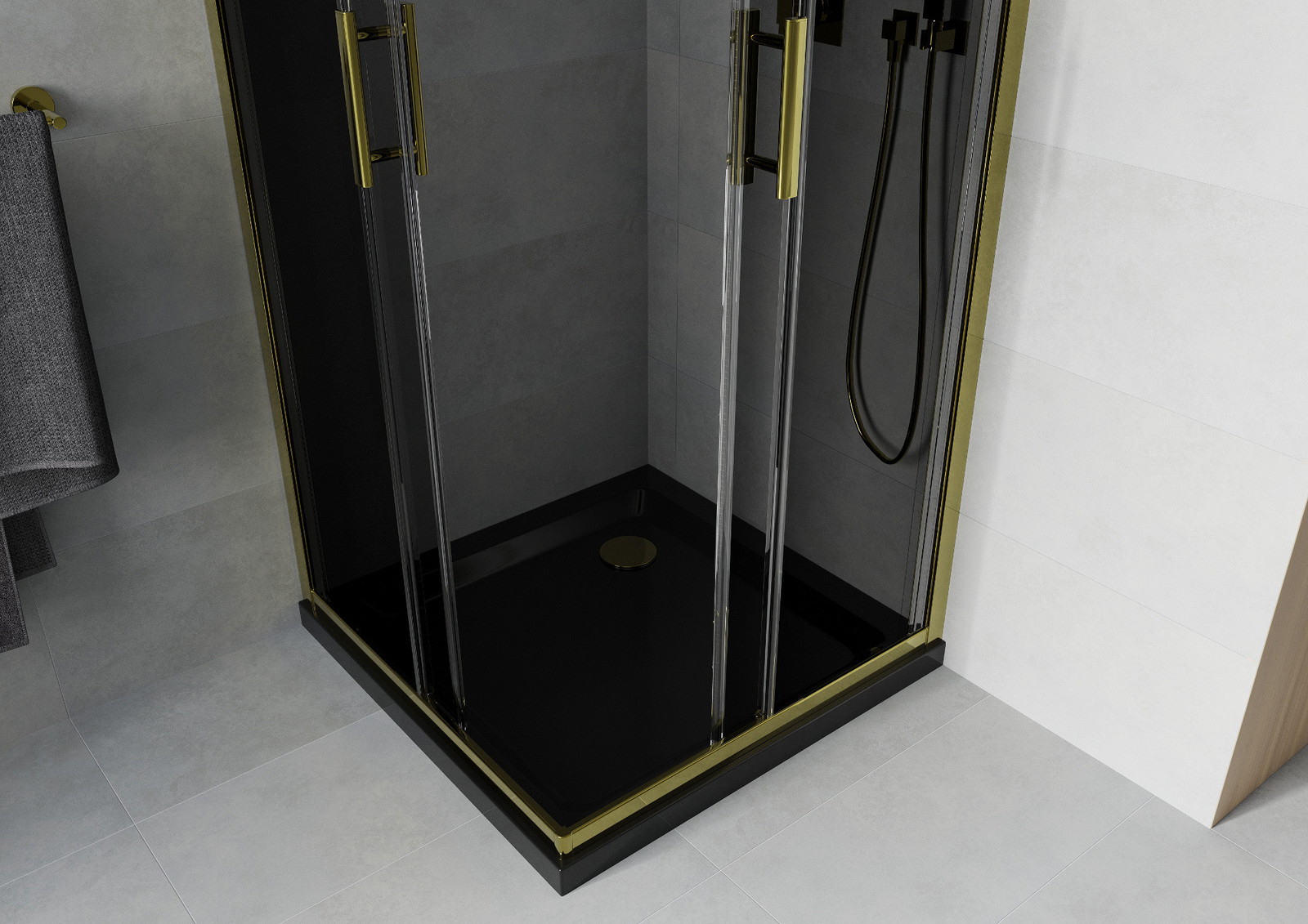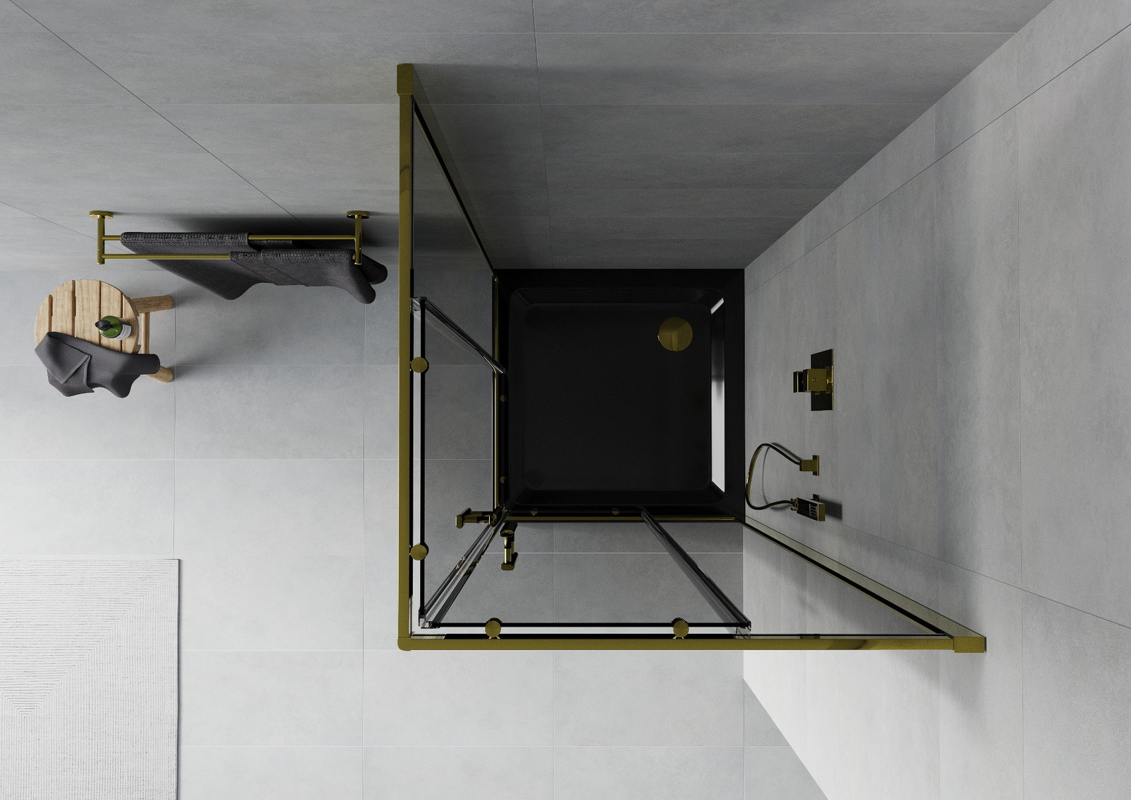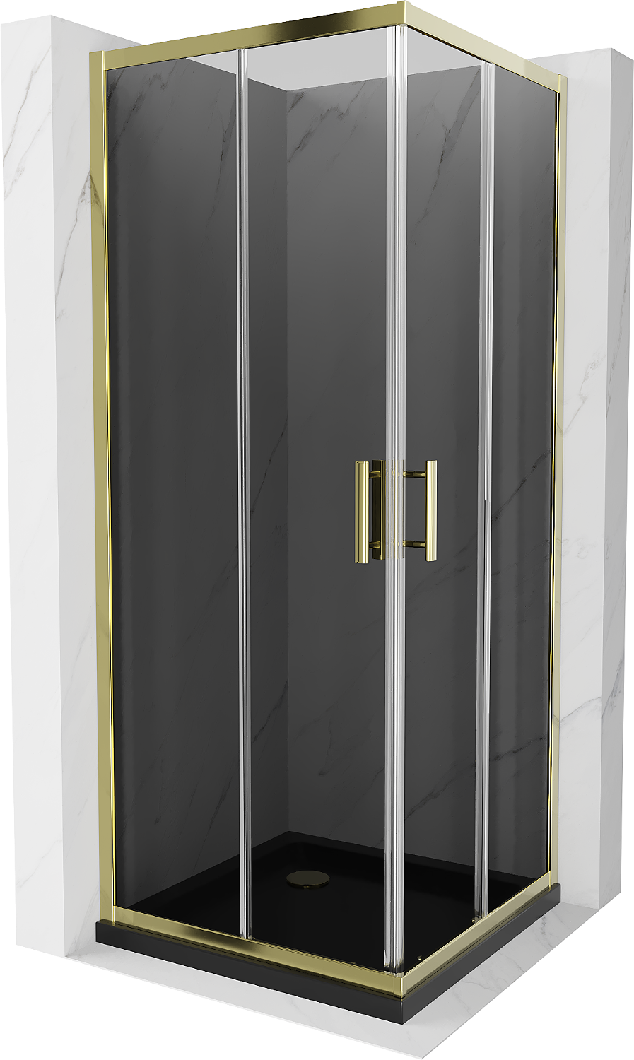 Mexen Rio kvadratinė dušo kabina 80 x 80 cm, grafitas, auksinė + Flat padėklas, juodas - 860-080-080-50-40-4070G