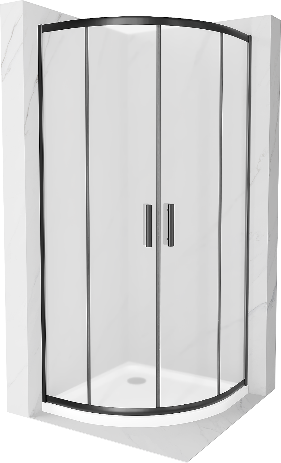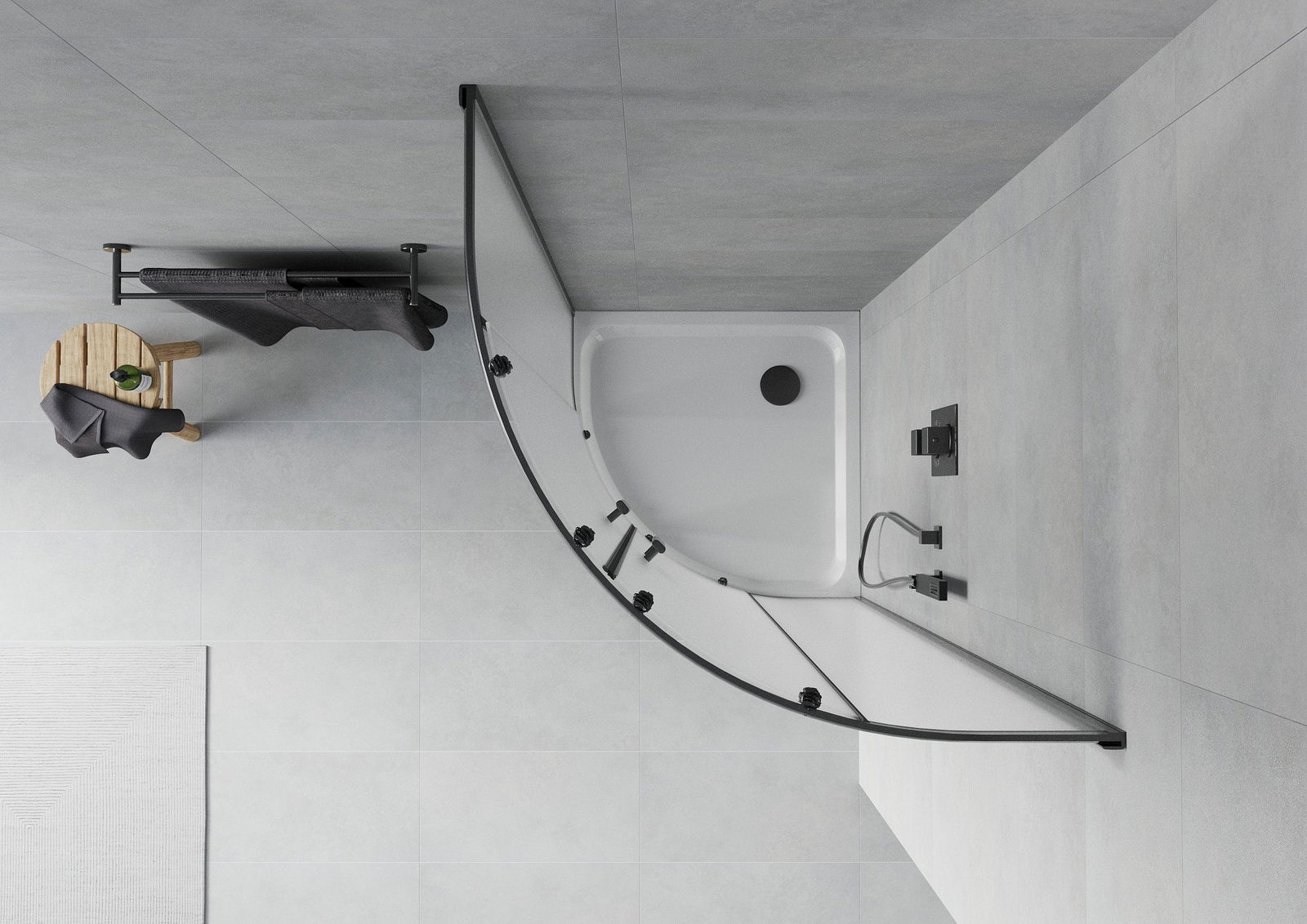 Mexen Rio pusapvalė dušo kabina 80 x 80 cm, matinė, juoda + lėkštė Flat, balta - 863-080-080-70-30-4110B