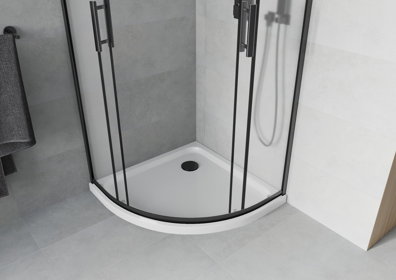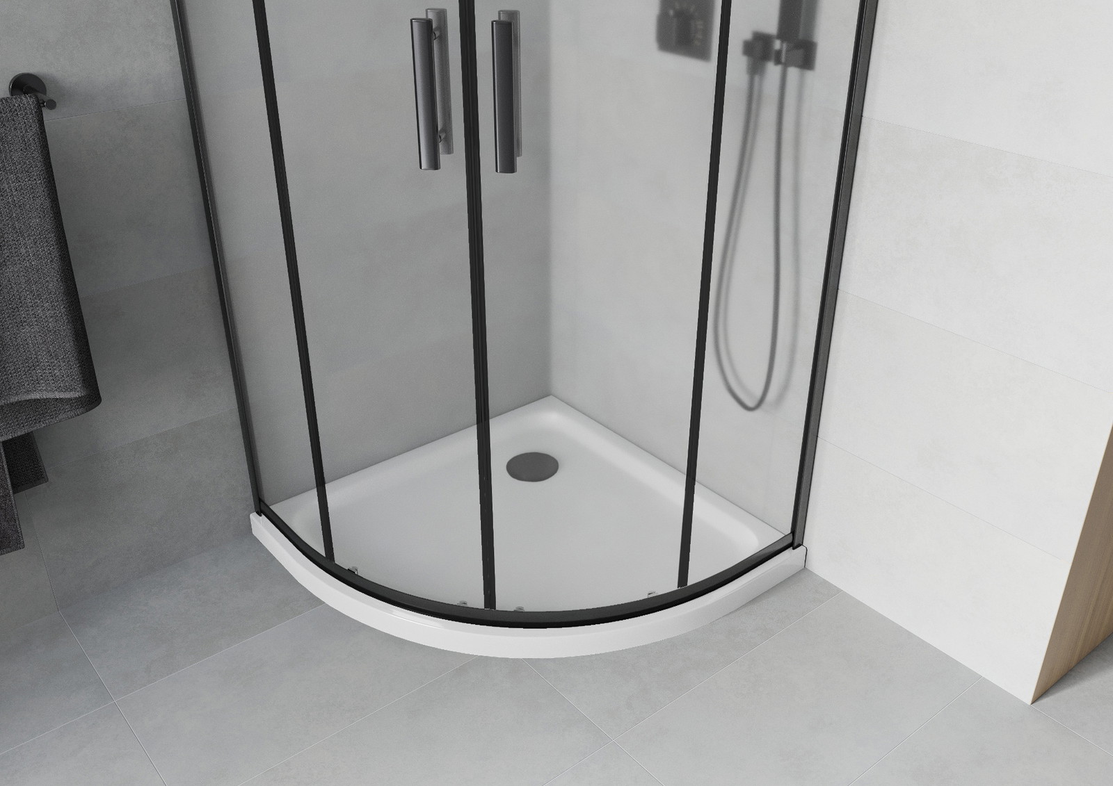 Mexen Rio pusapvalė dušo kabina 90 x 90 cm, matinė, juoda + dušo padėklas Flat, baltas - 863-090-090-70-30-4110B