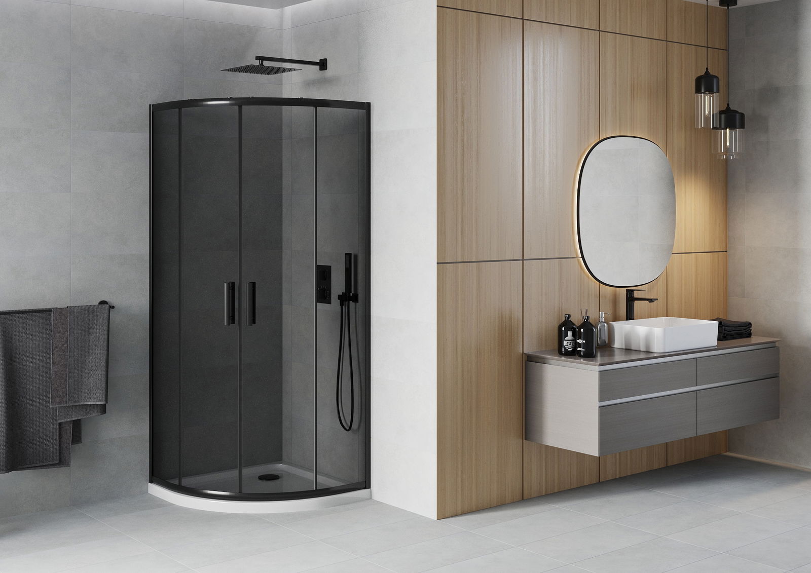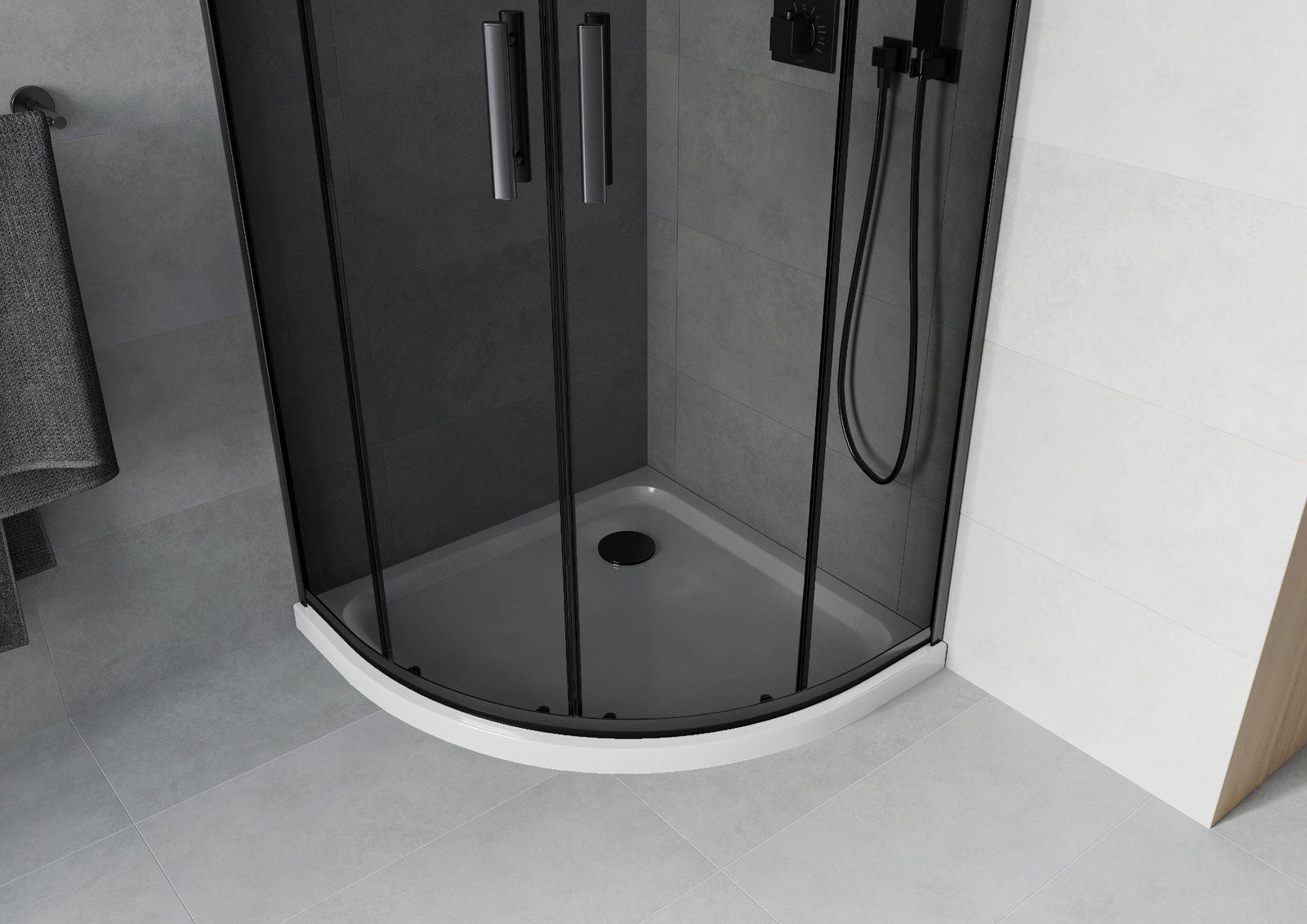 Mexen Rio pusapvalė dušo kabina 80 x 80 cm, grafitas, juoda + Flat padėklas, baltas - 863-080-080-70-40-4110B