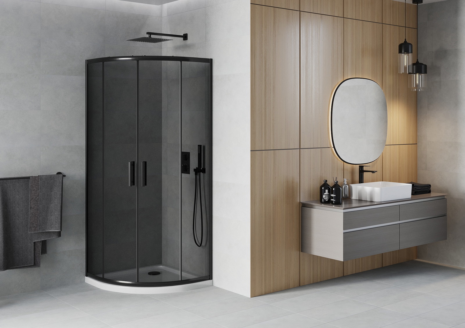 Mexen Rio pusapvalė dušo kabina 80 x 80 cm grafito spalvos su juoda apdaila yra elegantiškas ir funkcionalus sprendimas bet kuriai voniai. Dėl universalaus montavimo ir pločio reguliavimo idealiai tinka įvairiose erdvėse. Stumdomos grūdinto stiklo durys, 6 mm storio, ir lengvai valoma danga užtikrina patvarumą ir naudojimo patogumą. Komplekte yra baltas sanitarinio akrilo dušo padėklas Flat, kuris pasižymi pusapvaliu, plonu dizainu ir sustiprintu apačia. Sifonas, valomas iš viršaus, ir juodas išleidimo kamštis užtikrina praktinį sprendimą.