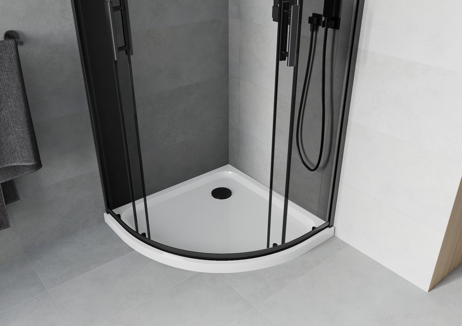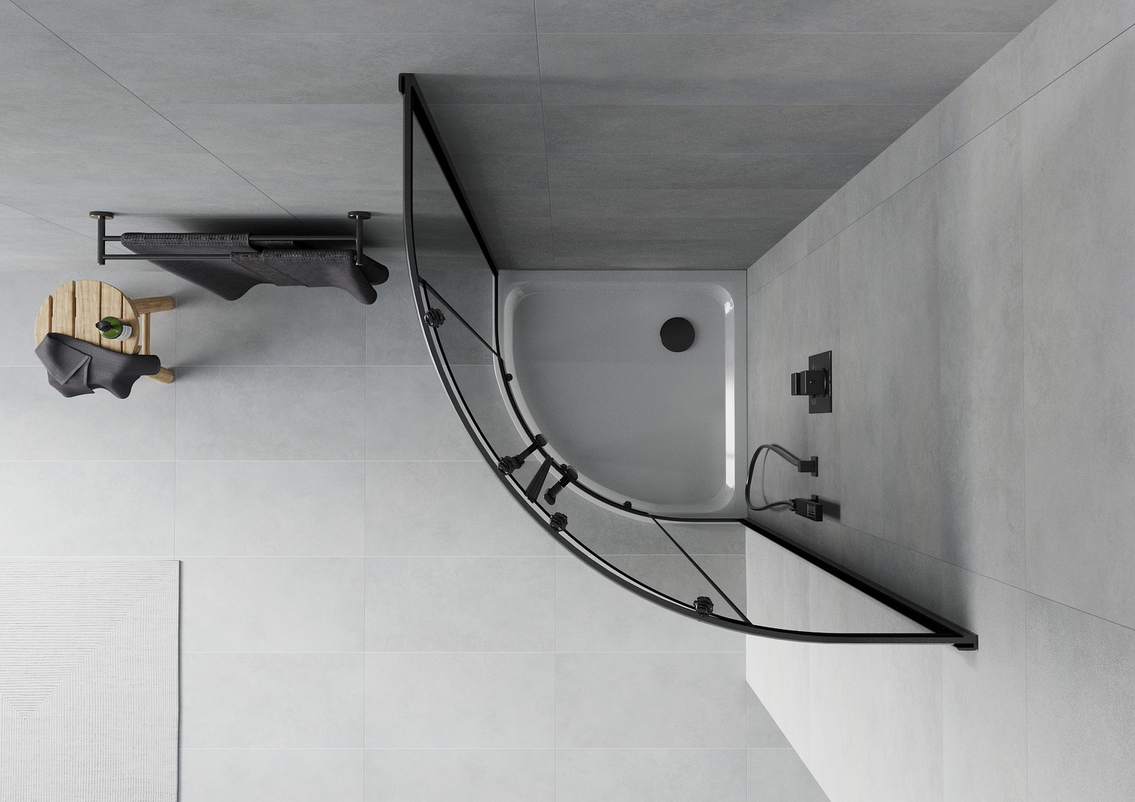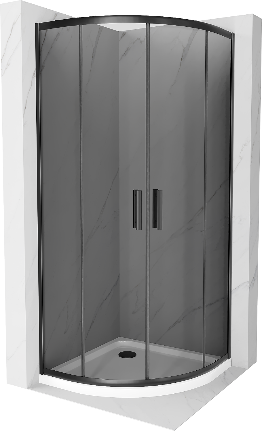 Mexen Rio pusapvalė dušo kabina 80 x 80 cm, grafitas, juoda + plokščias dušo padėklas, baltas - 863-080-080-70-40-4110B