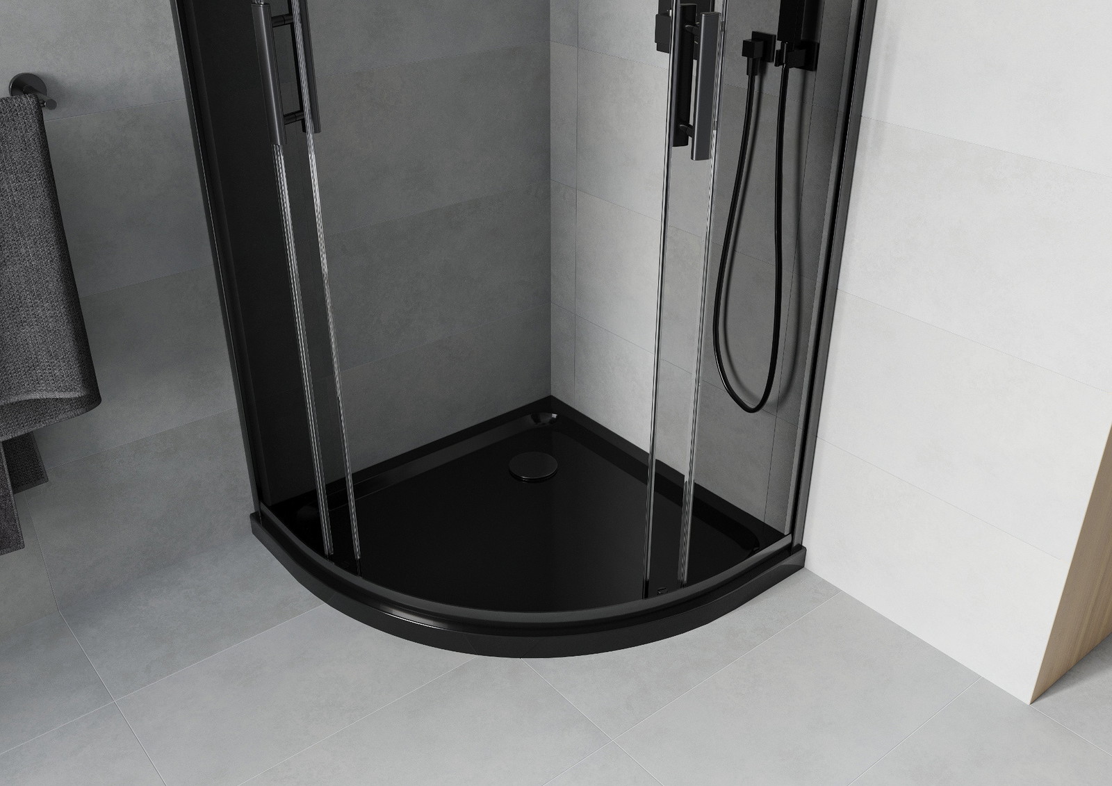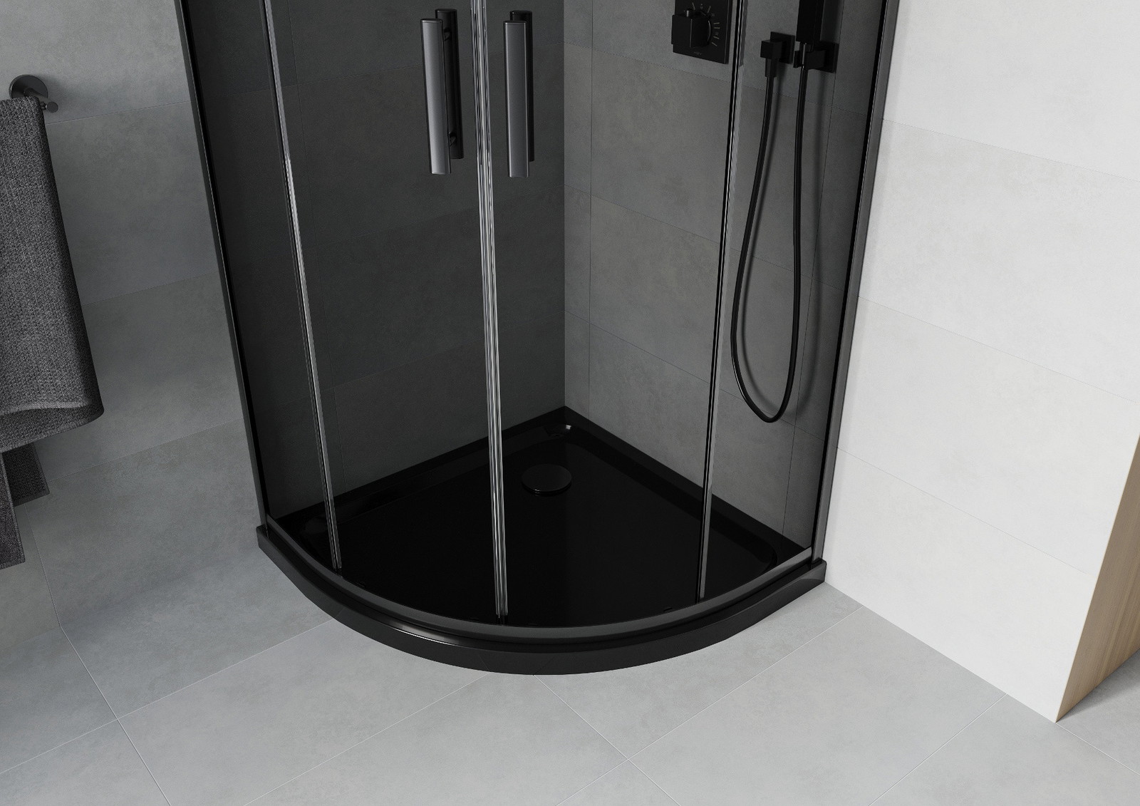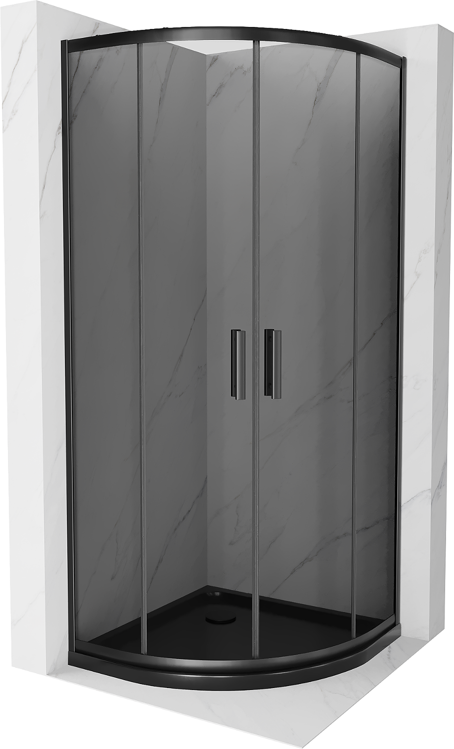 Mexen Rio pusapvalė dušo kabina 80 x 80 cm, grafitas, juoda + plokščias dušo padėklas, juodas - 863-080-080-70-40-4170B