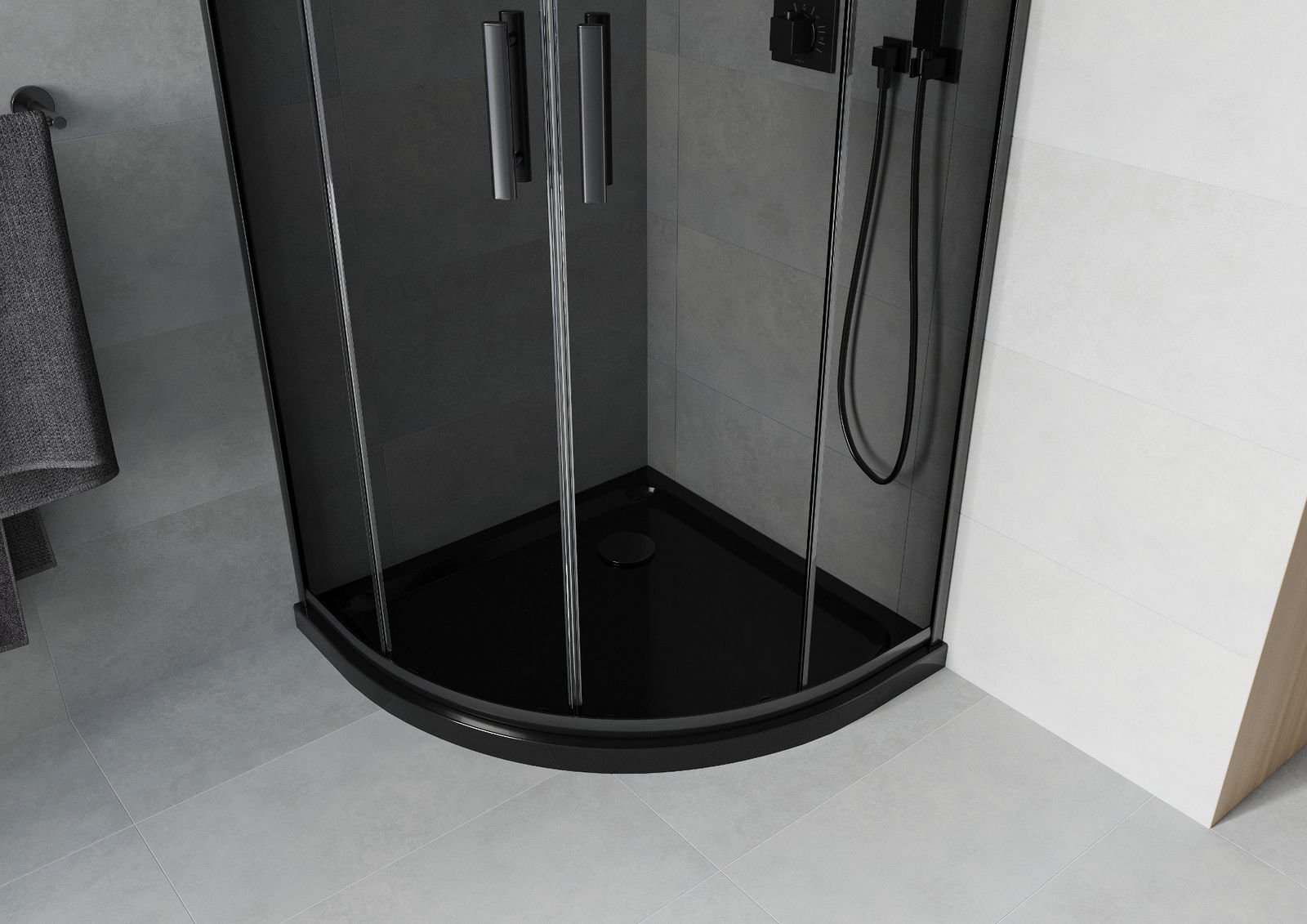 Mexen Rio pusapvalė dušo kabina 80 x 80 cm, grafito spalvos, juoda + Flat padėklas, juodas 863-080-080-70-40-4170B