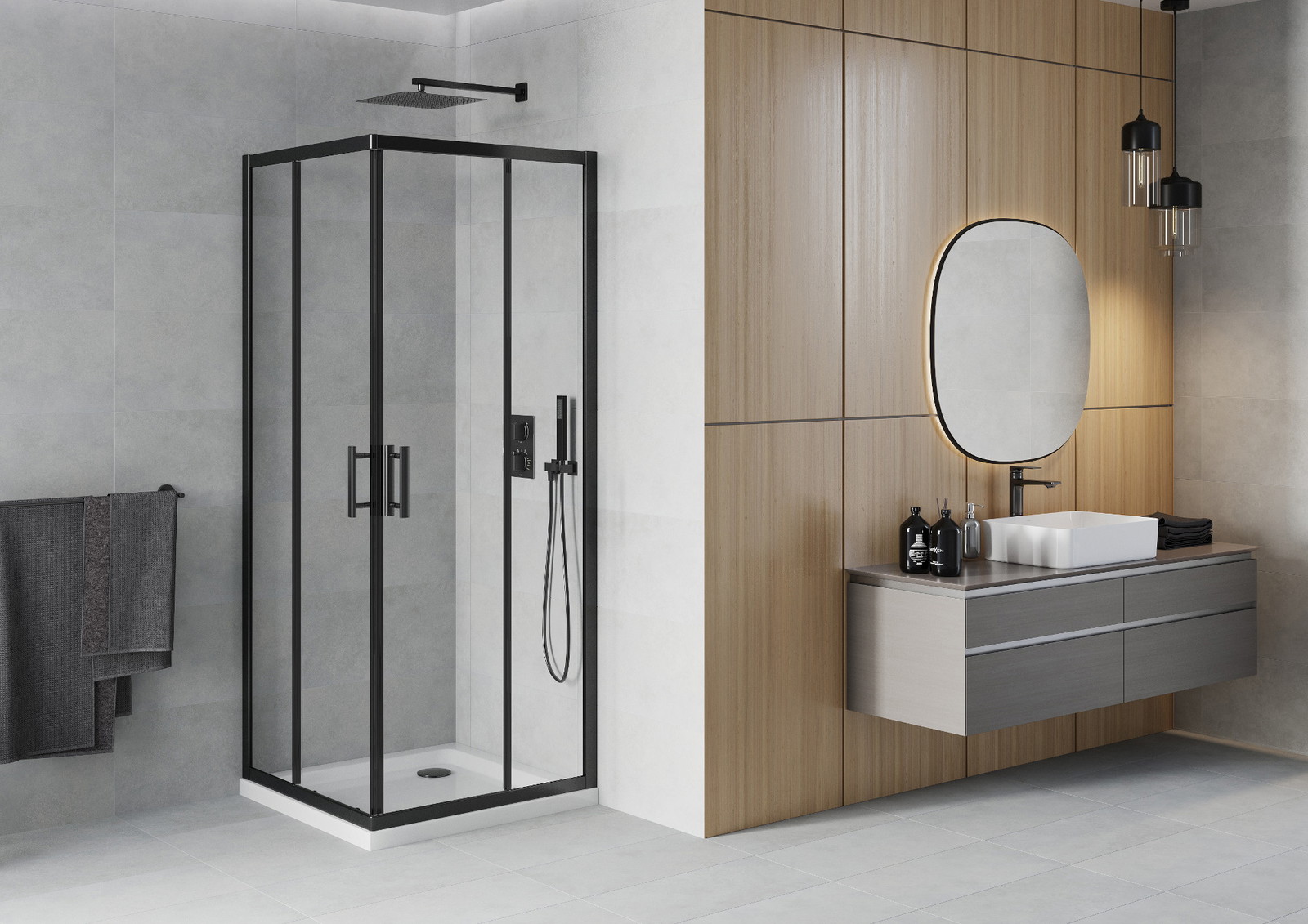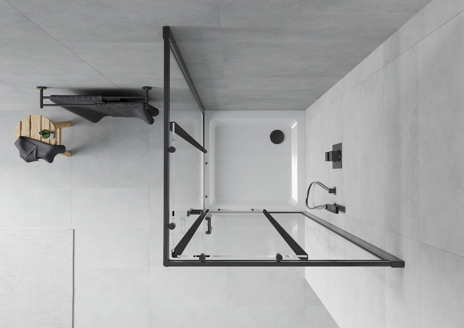 Mexen Rio kvadratinė dušo kabina 70 x 70 cm, skaidri, juoda + Flat padėklas, baltas - 860-070-070-70-00-4010B