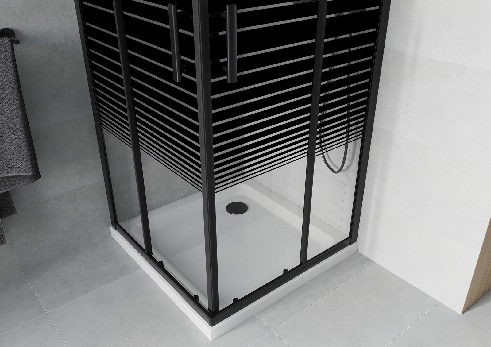 Mexen Rio kvadratinė dušo kabina 80 x 80 cm, juodos juostos, juoda + Flat padėklas, balta - 860-080-080-70-20-4010B