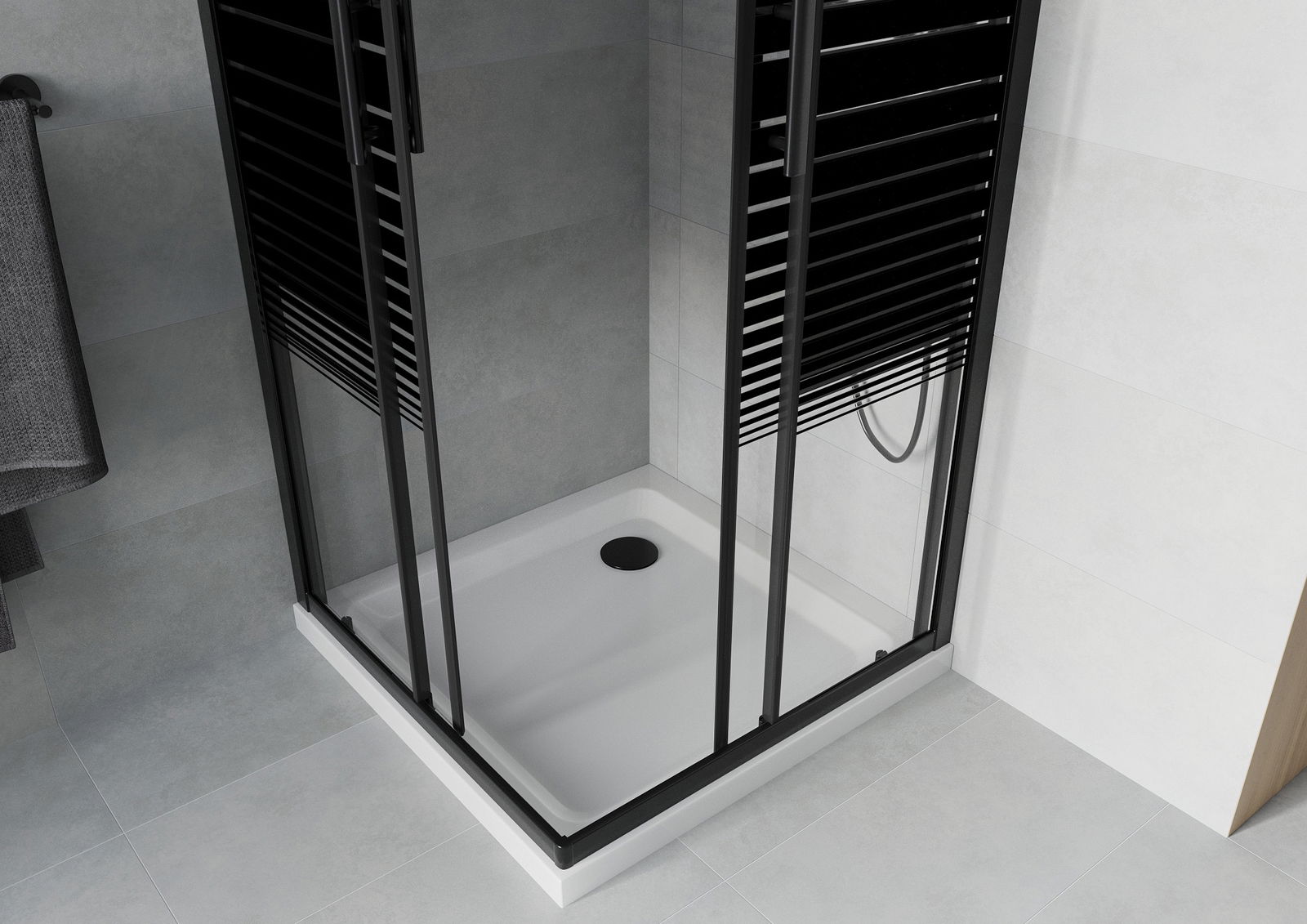 Mexen Rio kvadratinė dušo kabina 90 x 90 cm, juostos juodos, juoda + Flat padėklas, balta - 860-090-090-70-20-4010B