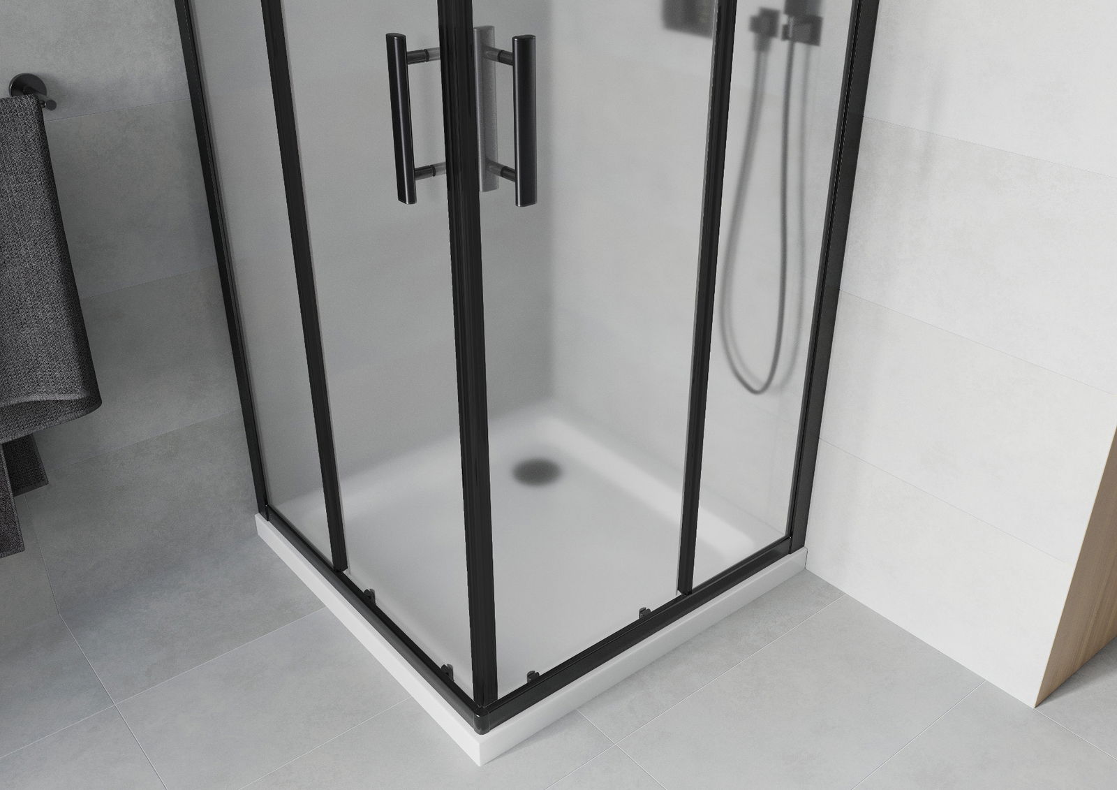 Mexen Rio kvadratinis dušo kabinas 80 x 80 cm, matinis, juodas + padėklas Flat, baltas - 860-080-080-70-30-4010B