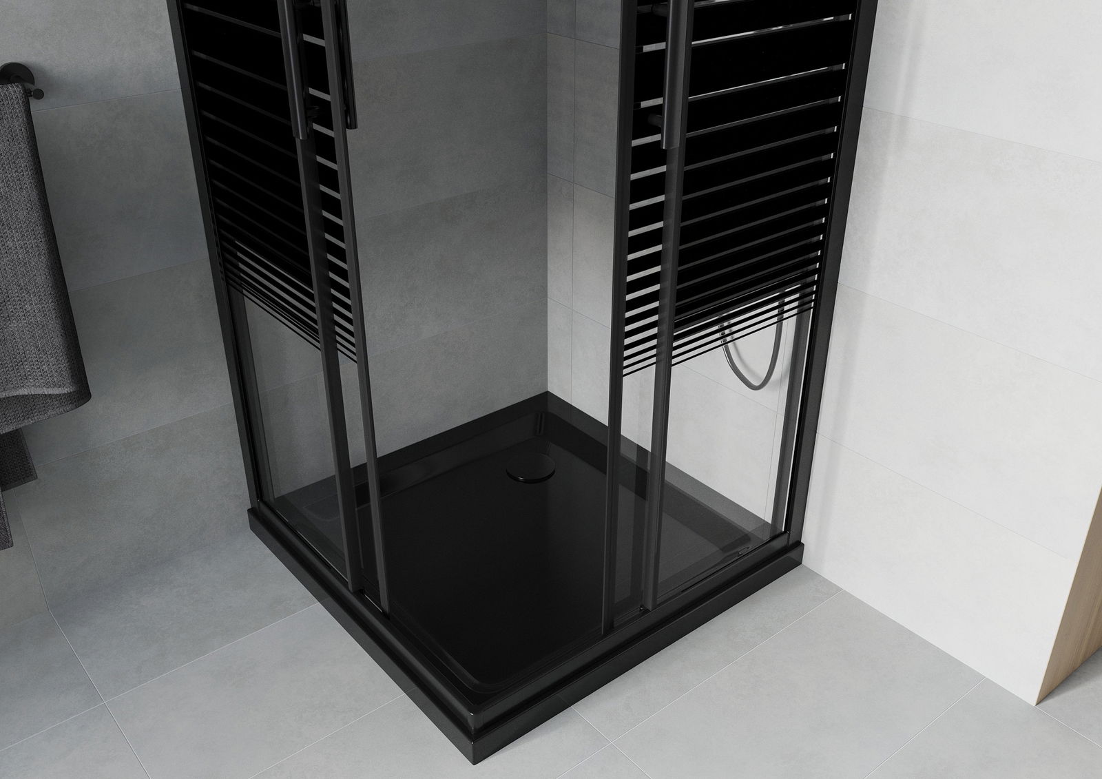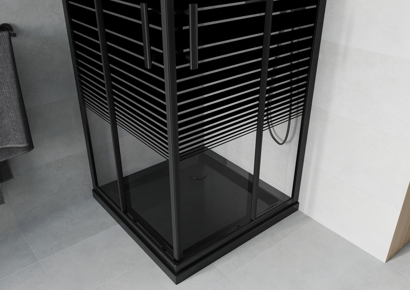 Mexen Rio kvadratinė dušo kabina 90 x 90 cm, juodos juostos, juoda + Flat padėklas, juodas - 860-090-090-70-20-4070B