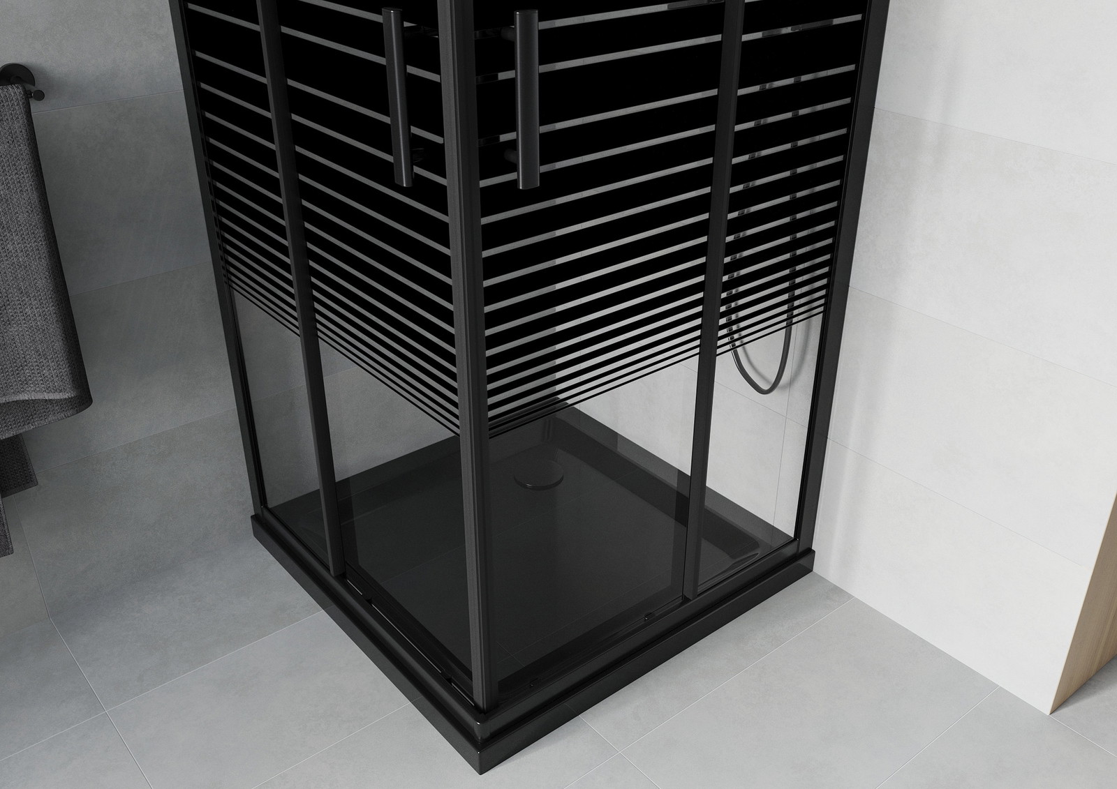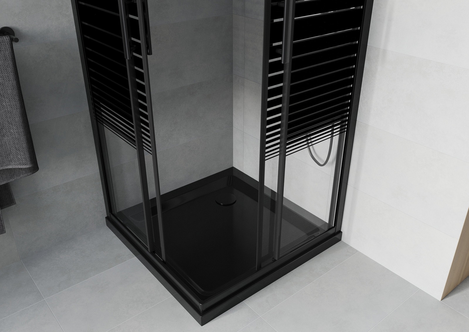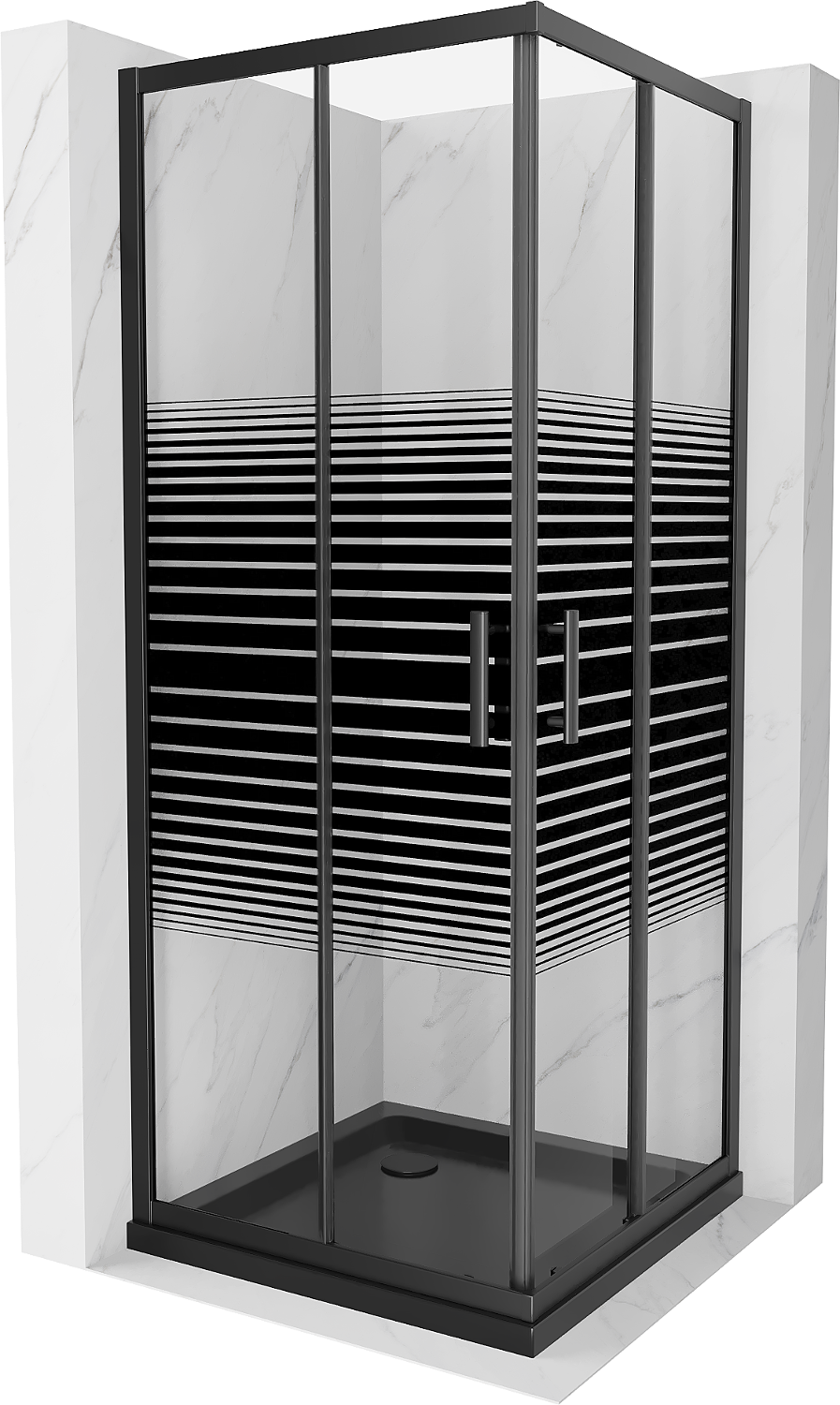 Mexen Rio kvadratinis dušas 90 x 90 cm, juostos, juoda + Flat padėklas, juoda - 860-090-090-70-20-4070B