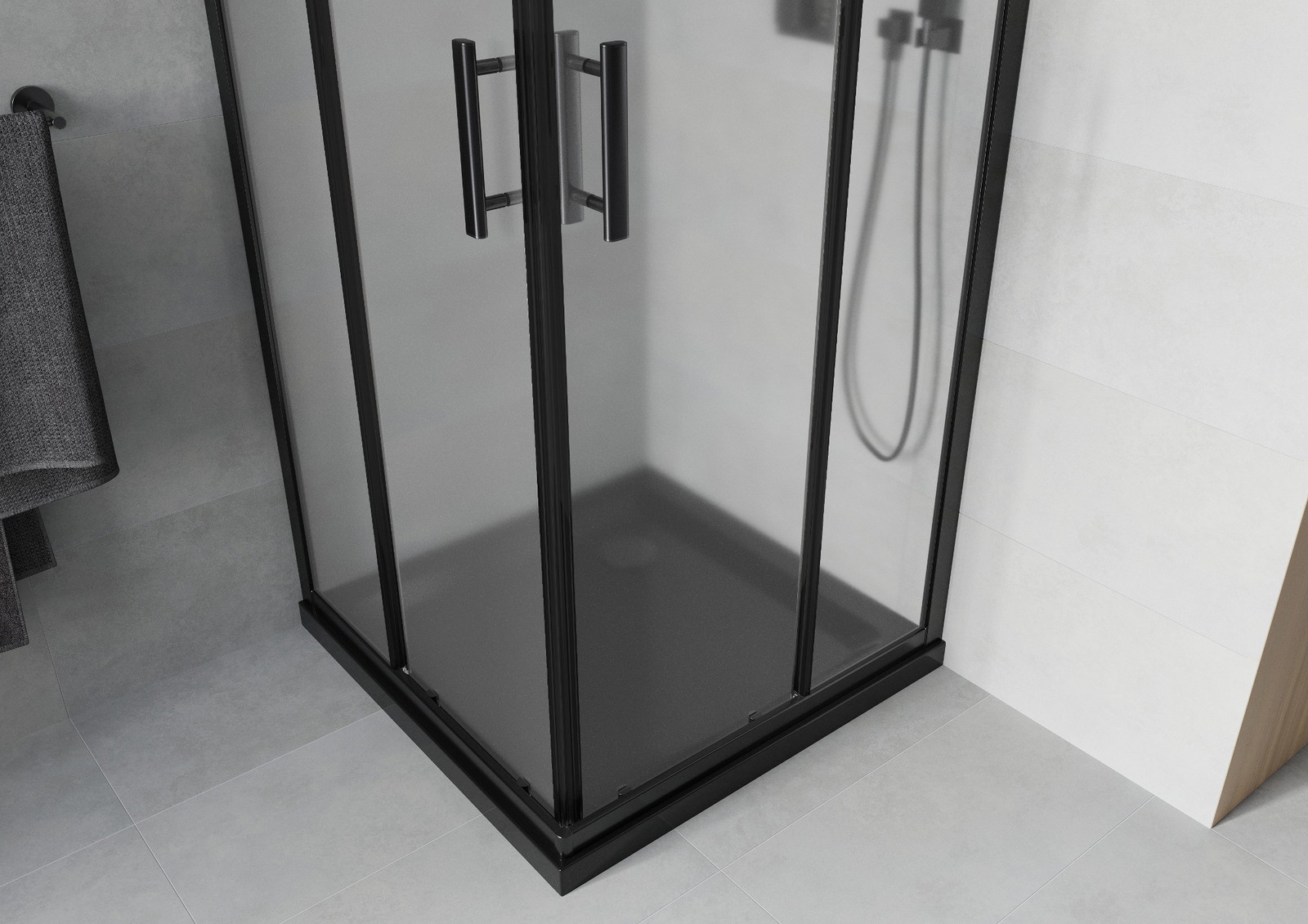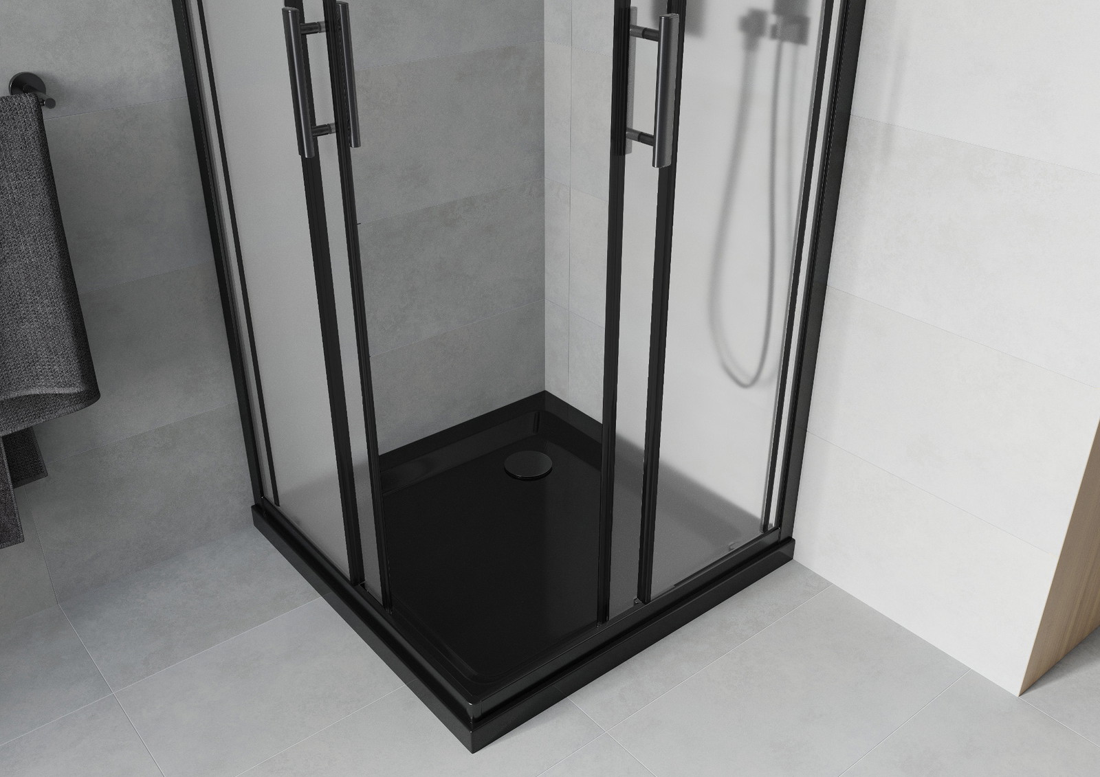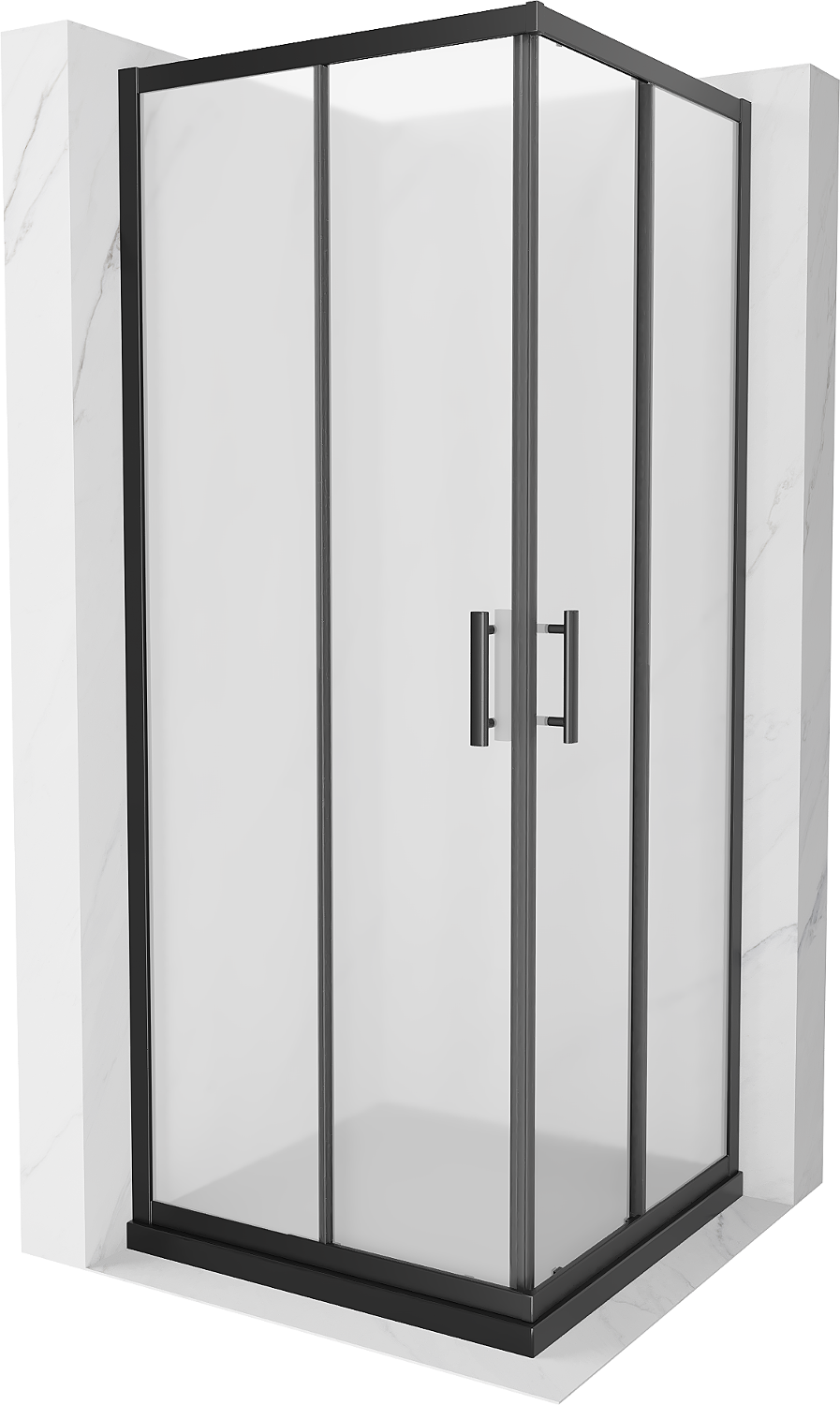 Mexen Rio kvadratinė dušo kabina 90 x 90 cm, matinė, juoda + Flat dušo padėklas, juodas - 860-090-090-70-30-4070B