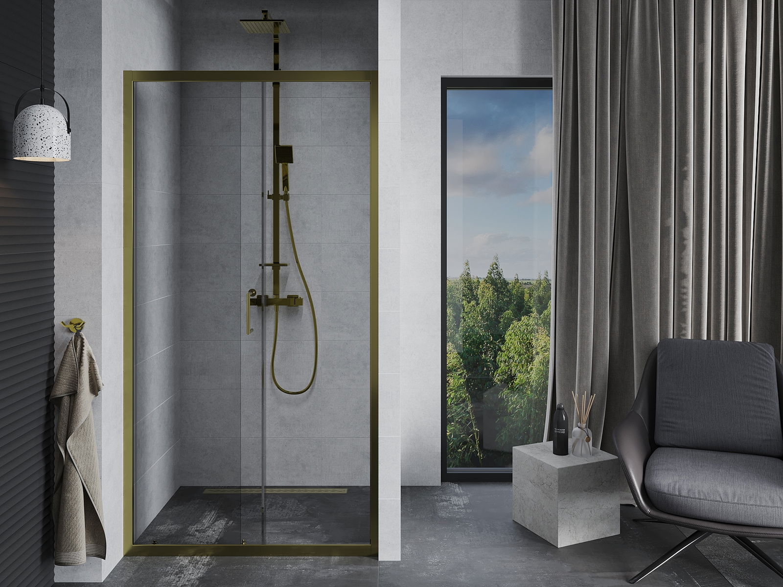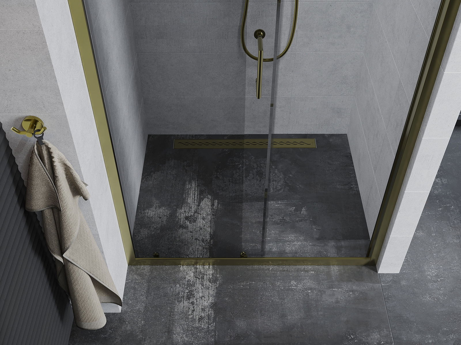 Mexen Apia stumdomos dušo durys 150 cm, skaidrios, auksinės - 845-150-000-50-00