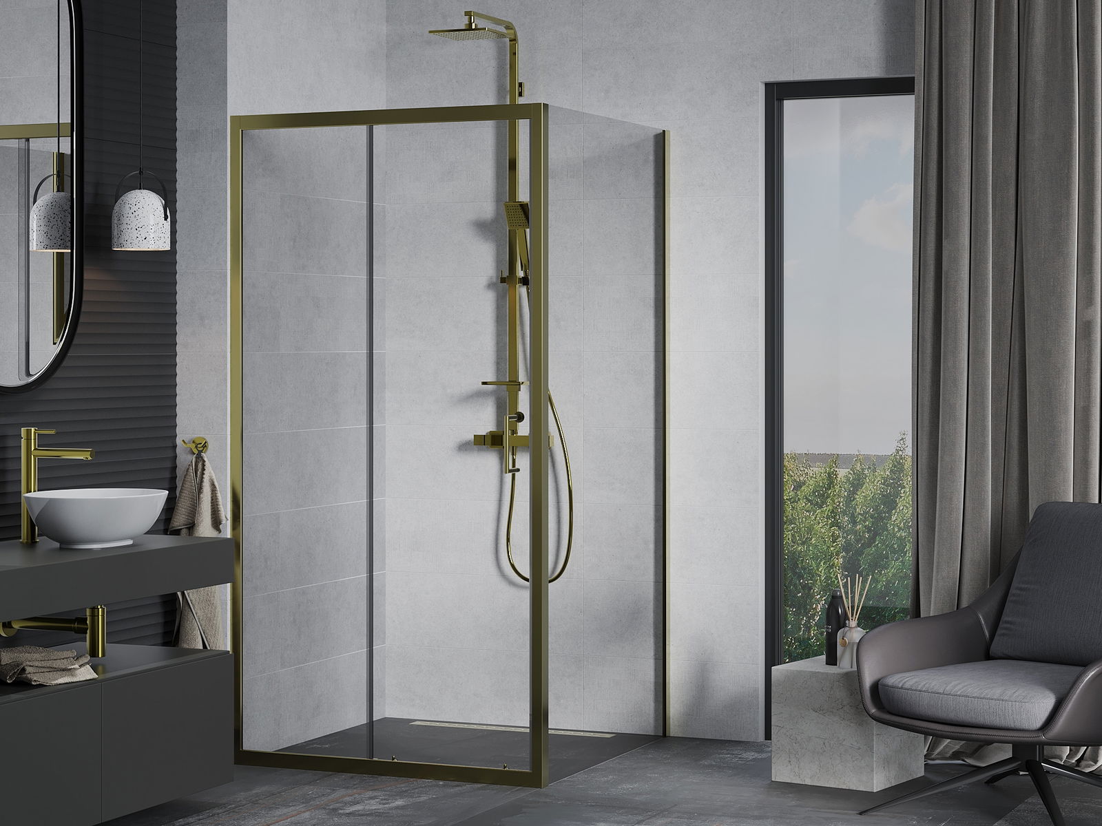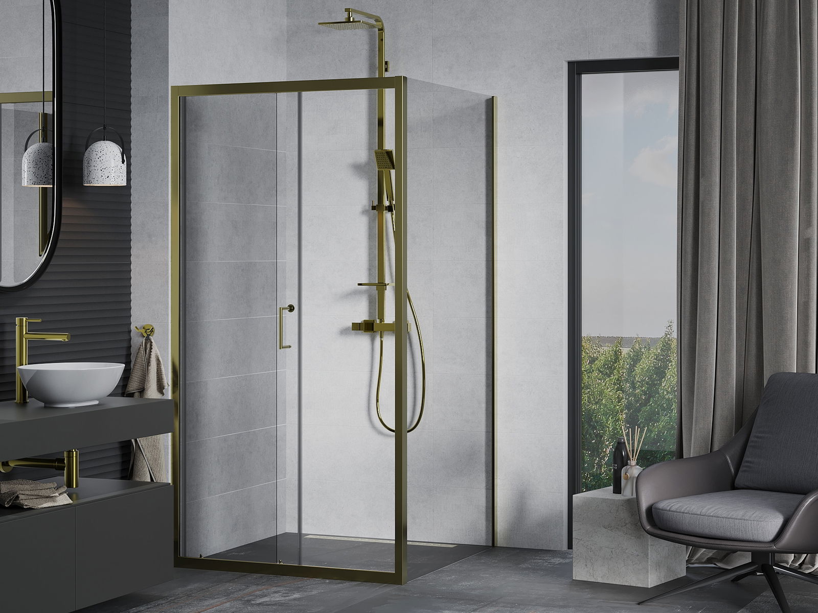 Mexen Apia stumdomoji dušo kabina 90 x 90 cm, skaidri, auksinė - 840-090-090-50-00