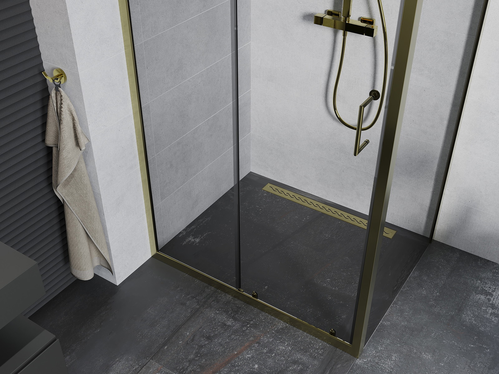 Mexen Apia stumiama dušo kabina 120 x 70 cm, skaidri, auksinė - 840-120-070-50-00