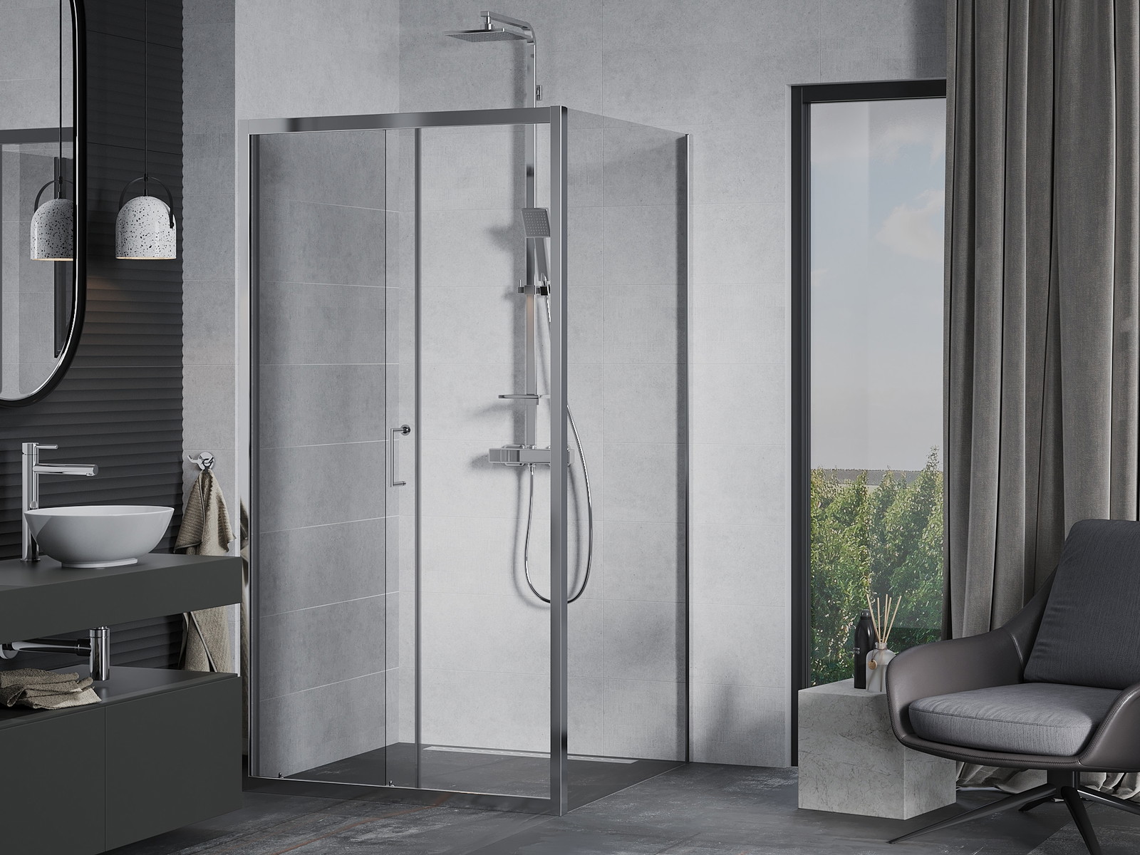 Mexen Apia stumdomas dušo kabinos komplektas 100 x 100 cm, skaidrus, chromuotas - 840-100-100-01-00