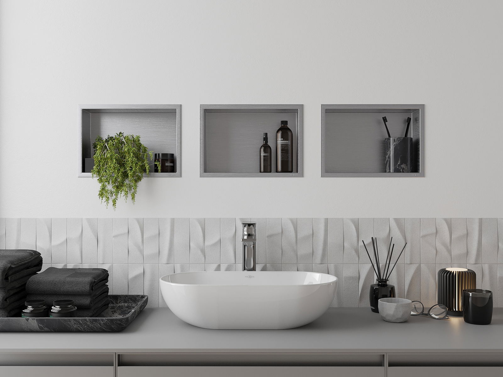 Įdiegimo į sieną arba specialiai paruoštoje pastate galimybė. Tai ypač modernus ir funkcinis sprendimas, leidžiantis sutaupyti vietos ir suderinti produktą su interjero estetika ir sukurti nuoseklią kompoziciją.