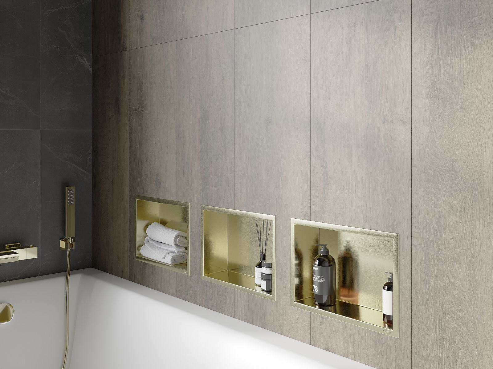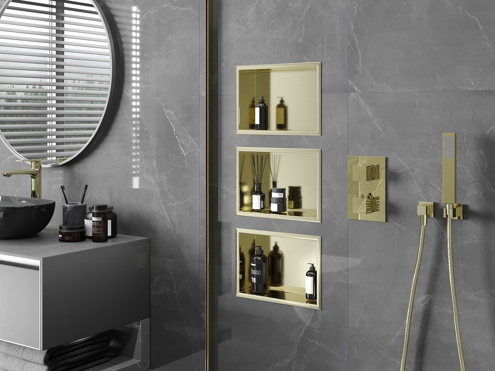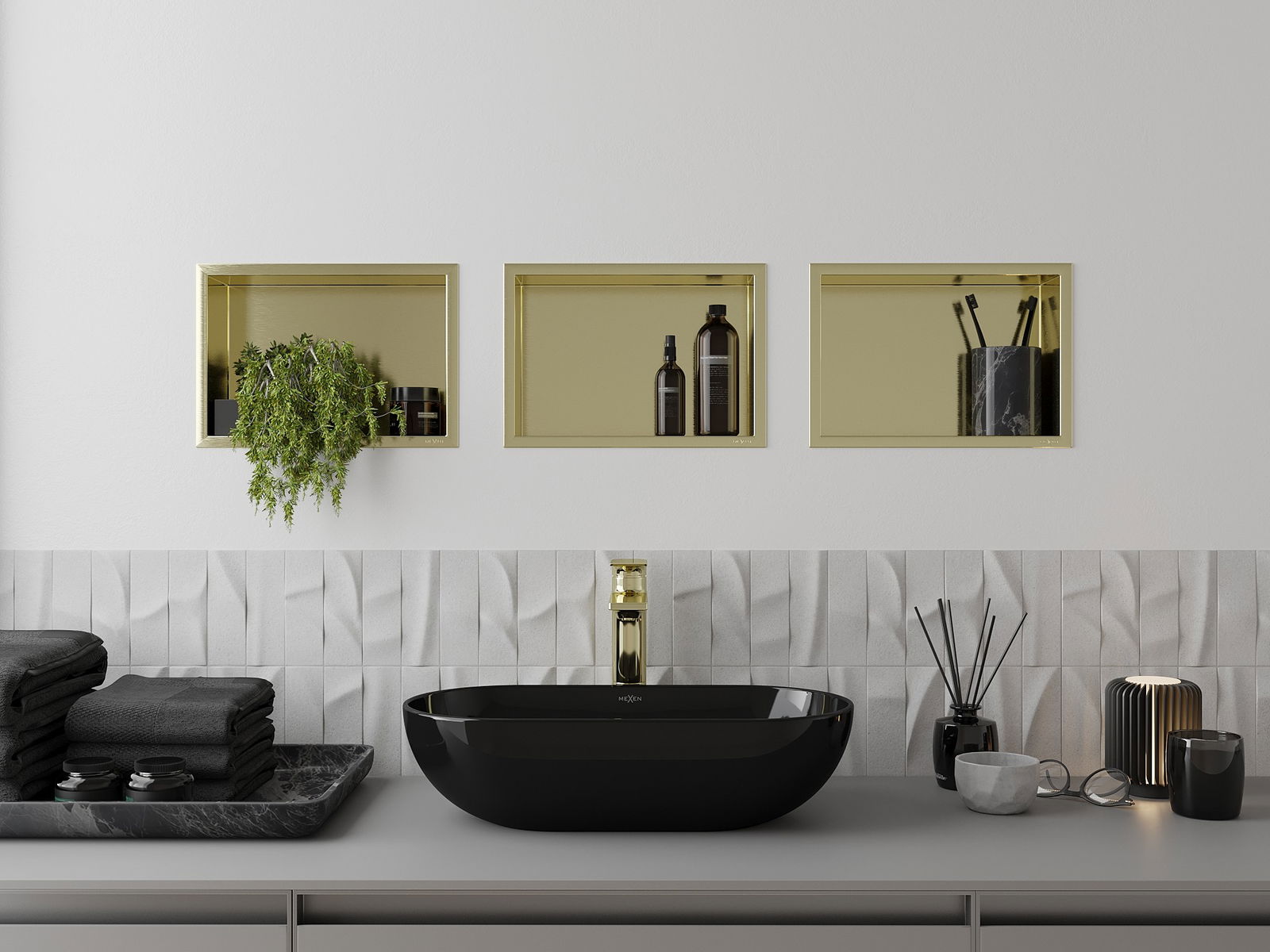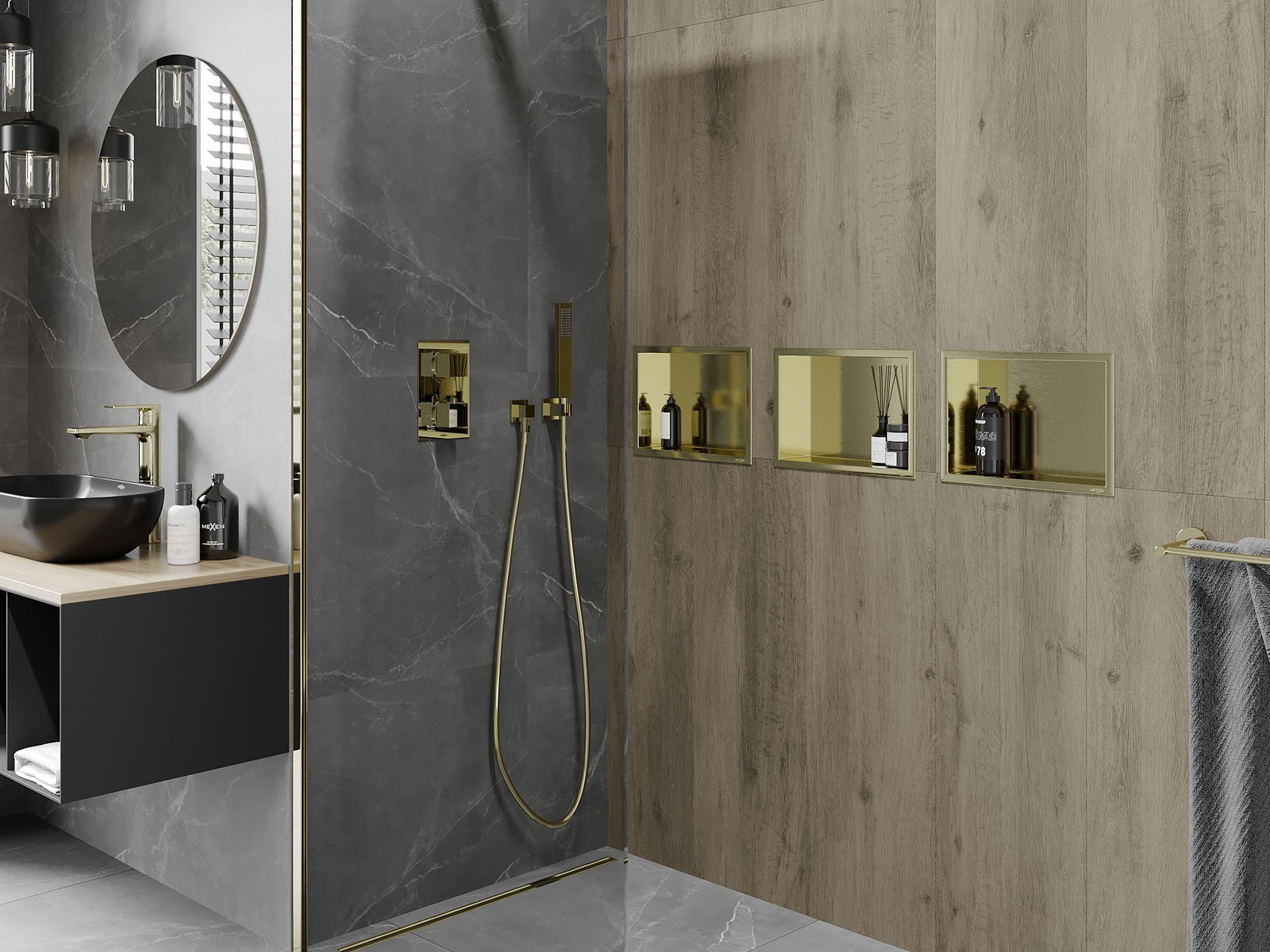 Mexen X-Wall-R nišinė lentyna su apvadu 30 x 20 cm, aukso šlifuota - 1950302010
