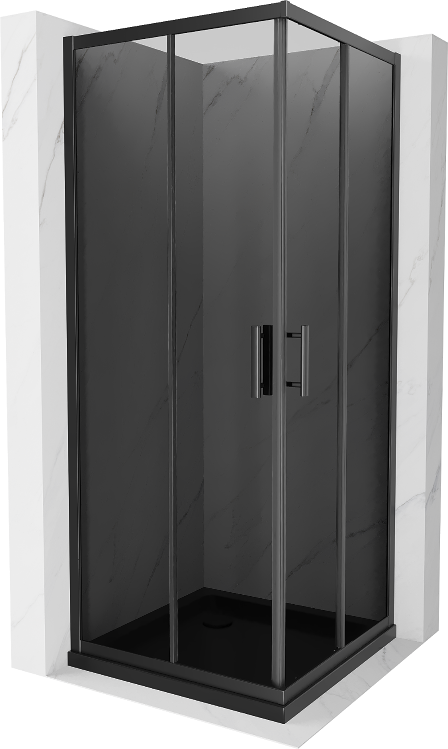 Mexen Rio kvadratinė dušo kabina 80 x 80 cm, grafitas, juoda + plokščias padėklas, juodas - 860-080-080-70-40-4070B