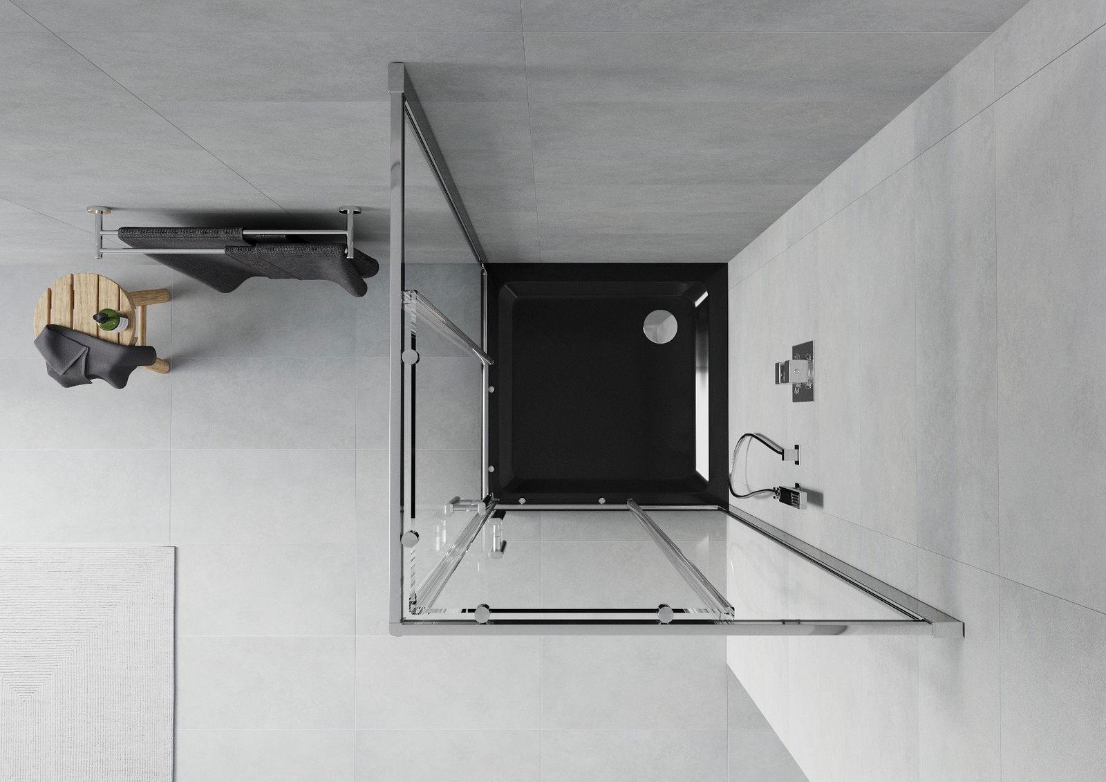 Mexen Rio kvardratinė dušo kabina 90 x 90 cm, permatoma, juoda - 860-090-090-70-00