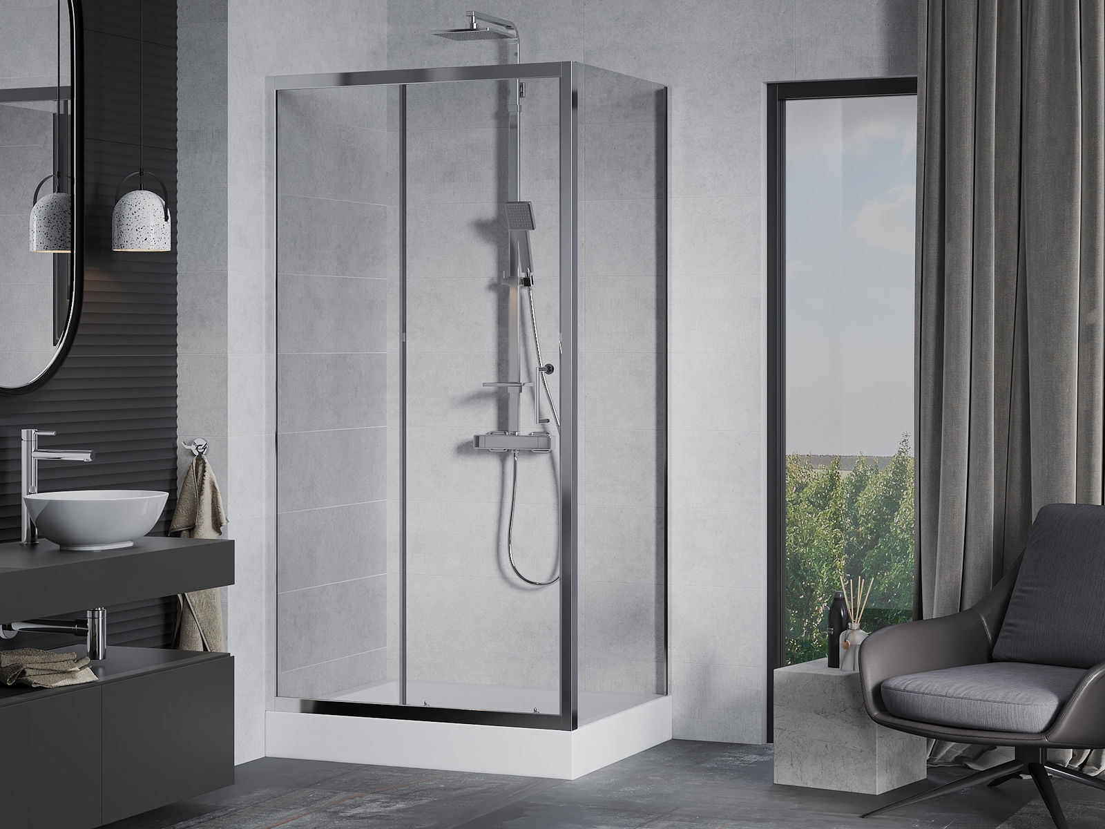 Mexen Apia stumdomas dušo kabinas 120 x 80 cm, permatomas, chromas + Rio dušo padėklas - 840-120-080-01-00-4510