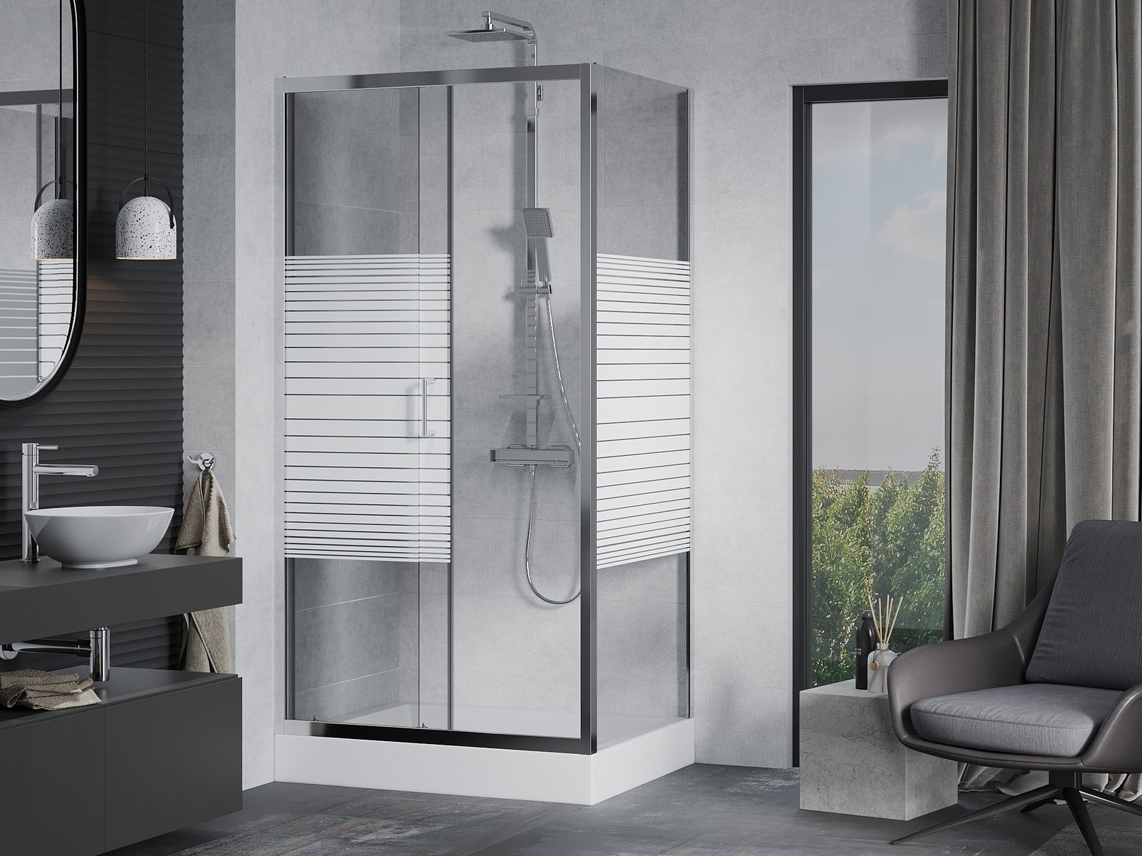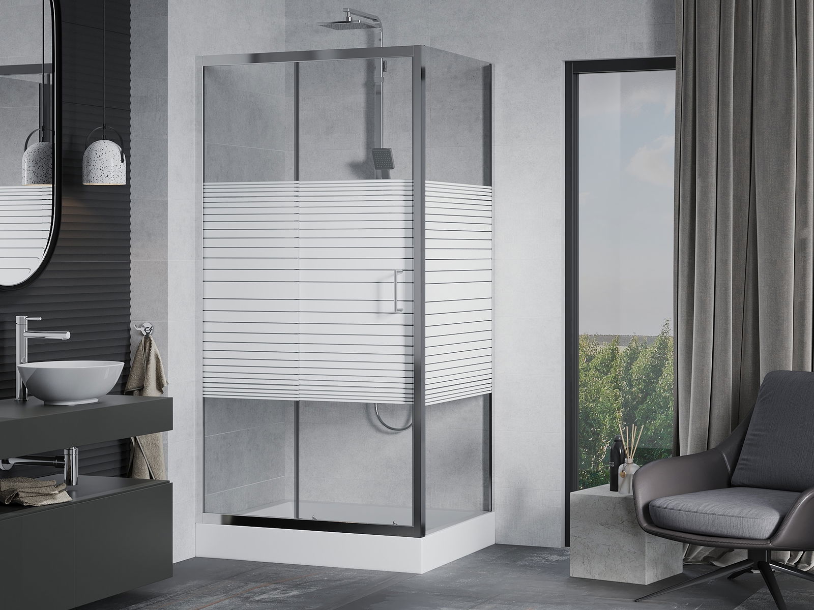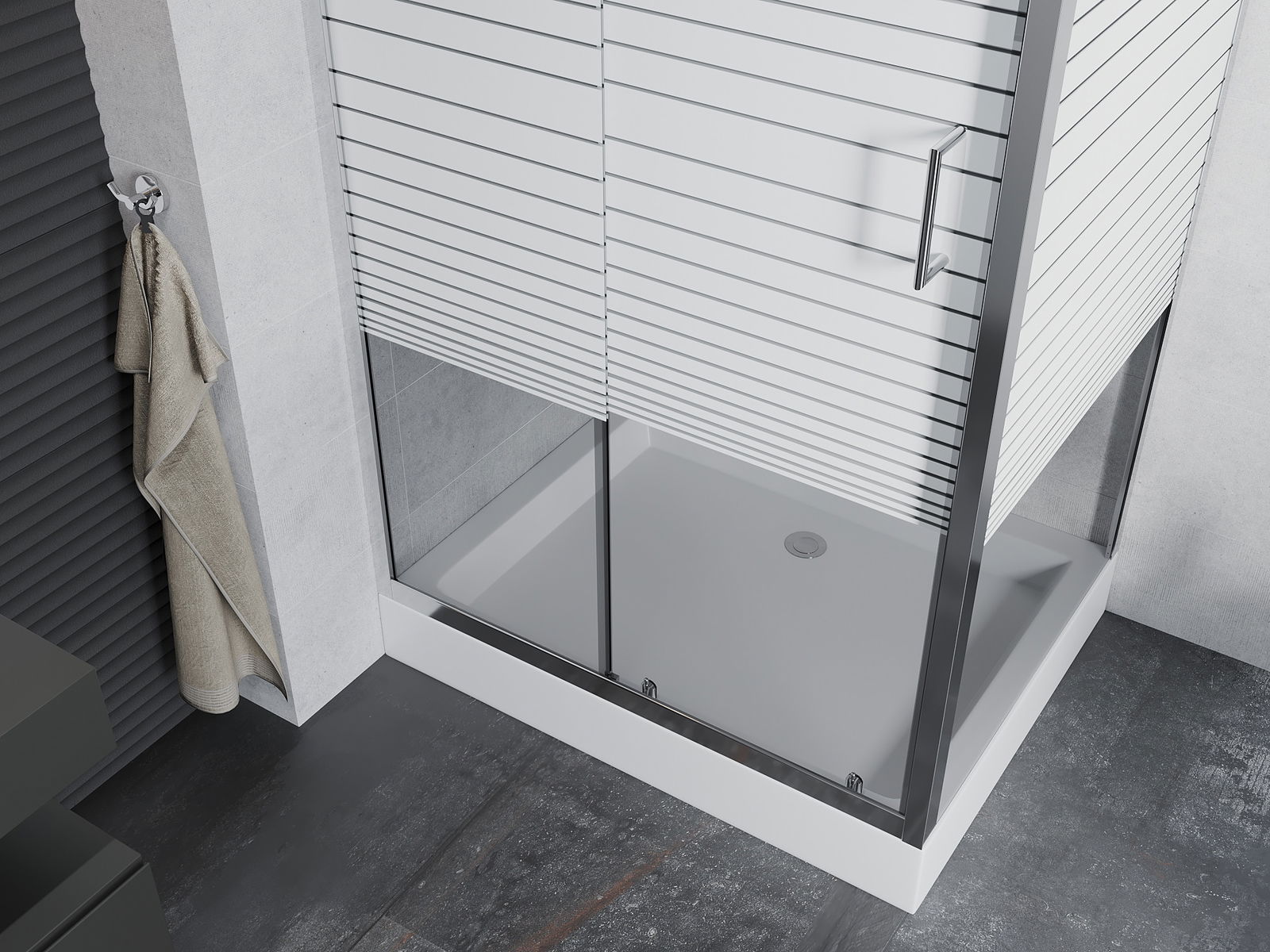 Mexen Apia slankiojančioji dušo kabina 120 x 90 cm, baltos juostos, chromas + Rio padėklas - 840-120-090-01-20-4510