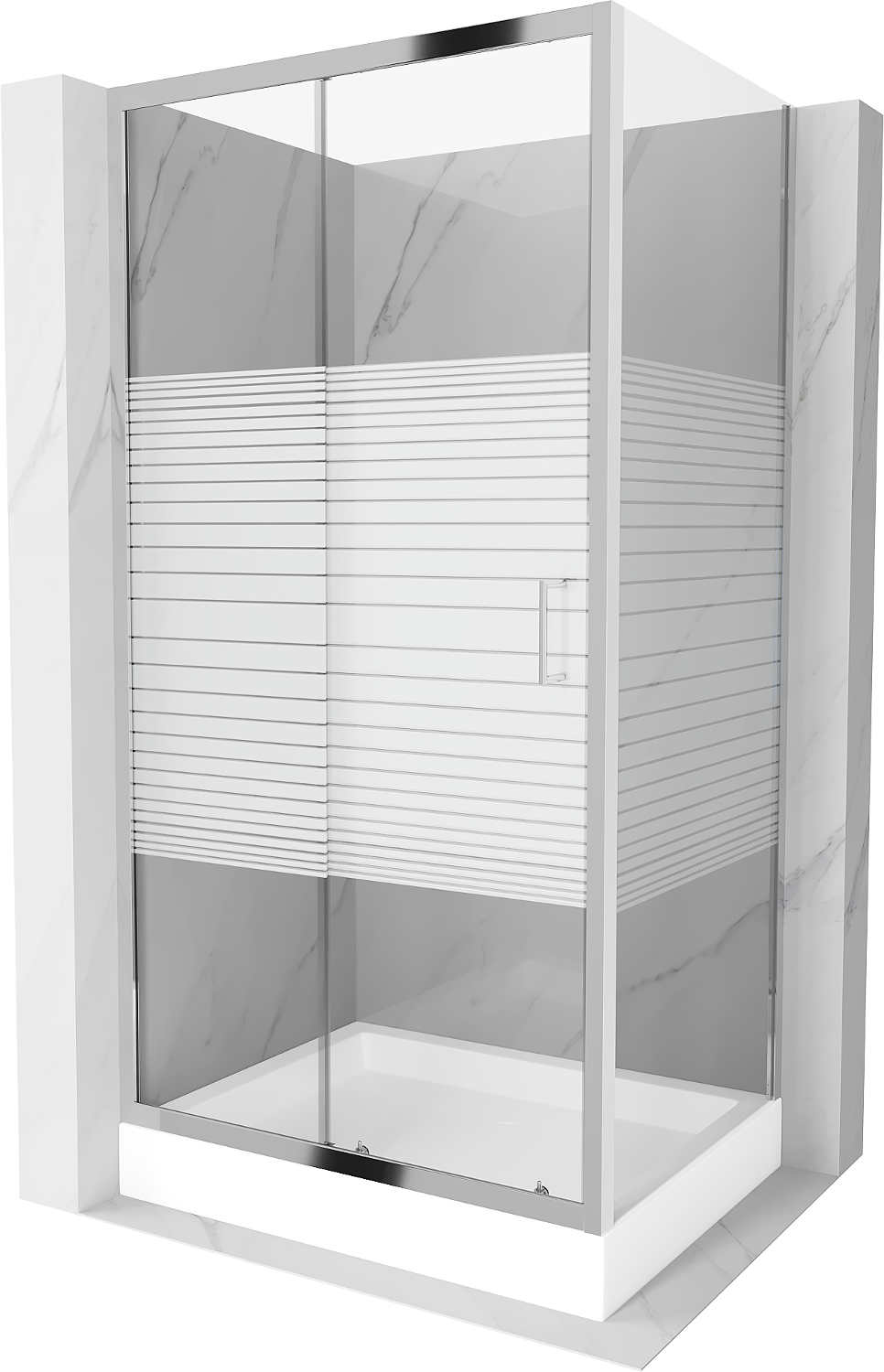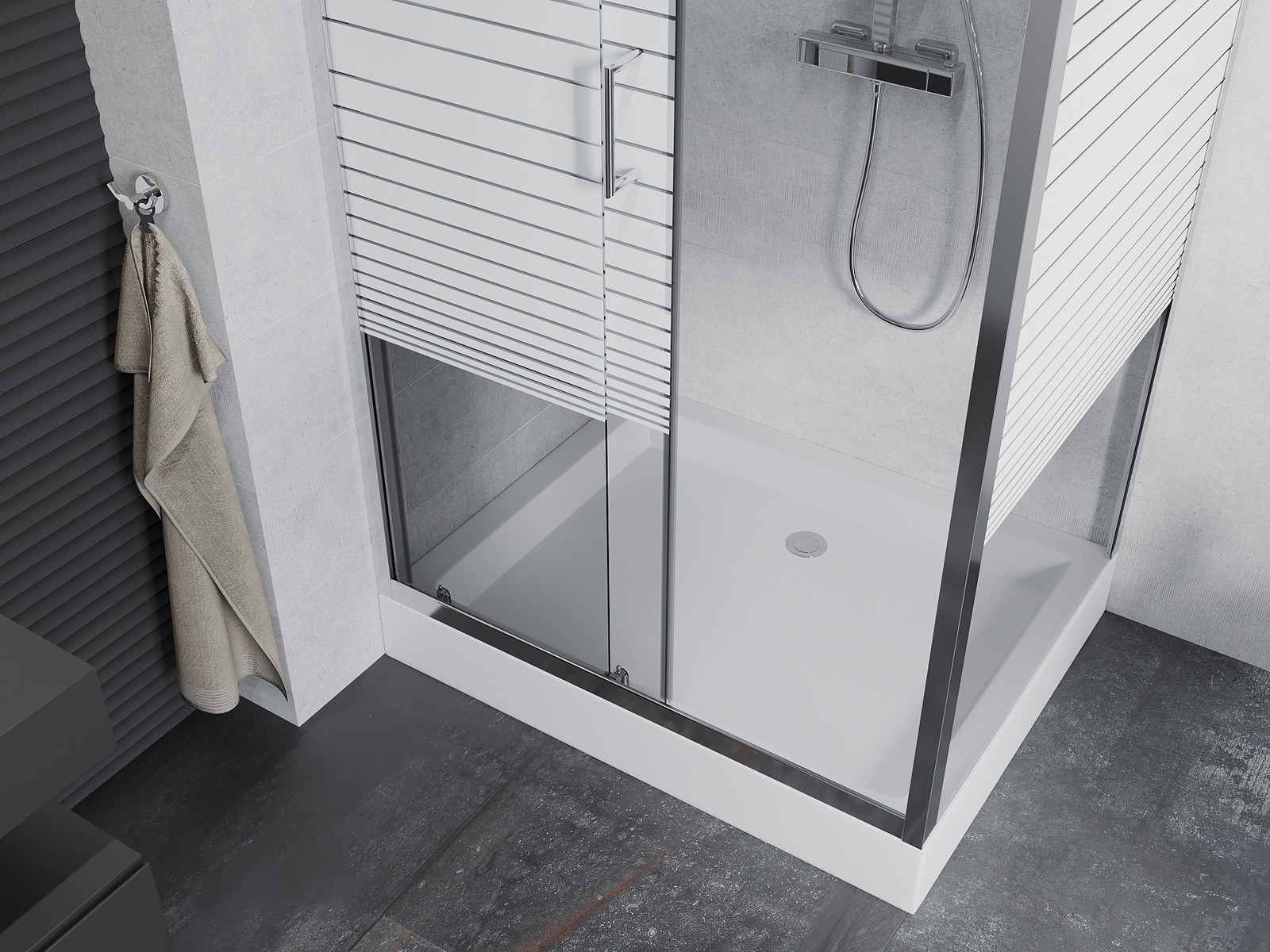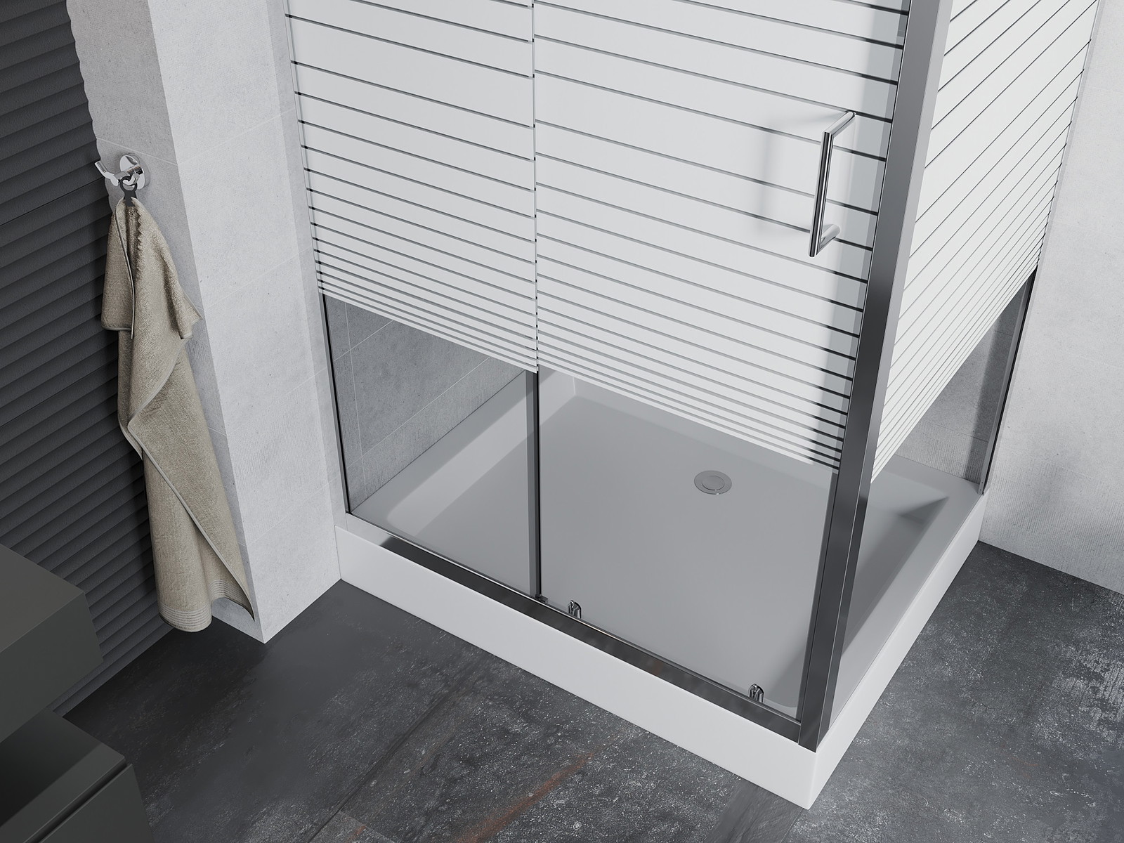 Mexen Apia slankioji dušo kabina 120 x 90 cm, baltos juostos, chromuotas + Rio padėklas - 840-120-090-01-20-4510