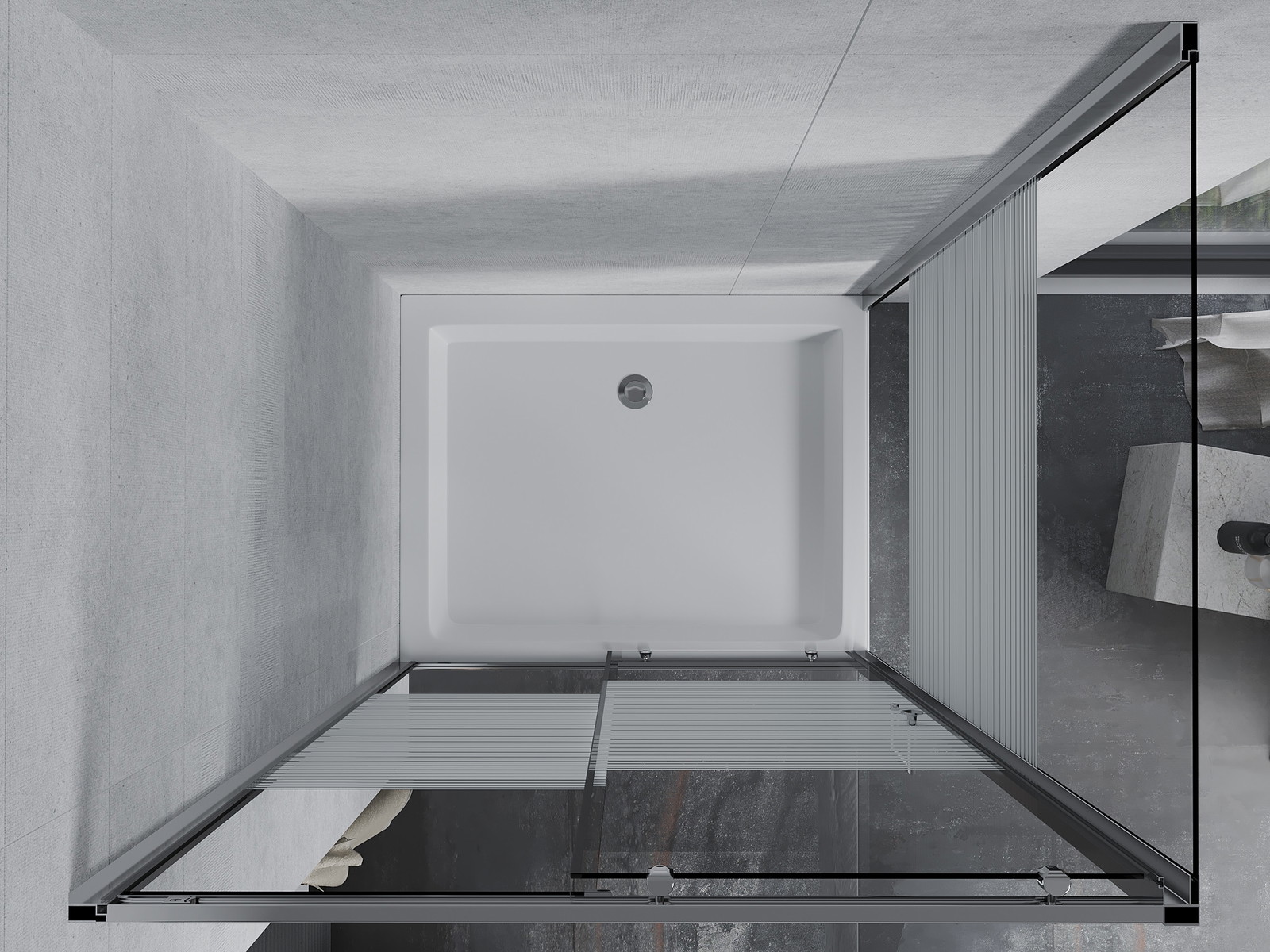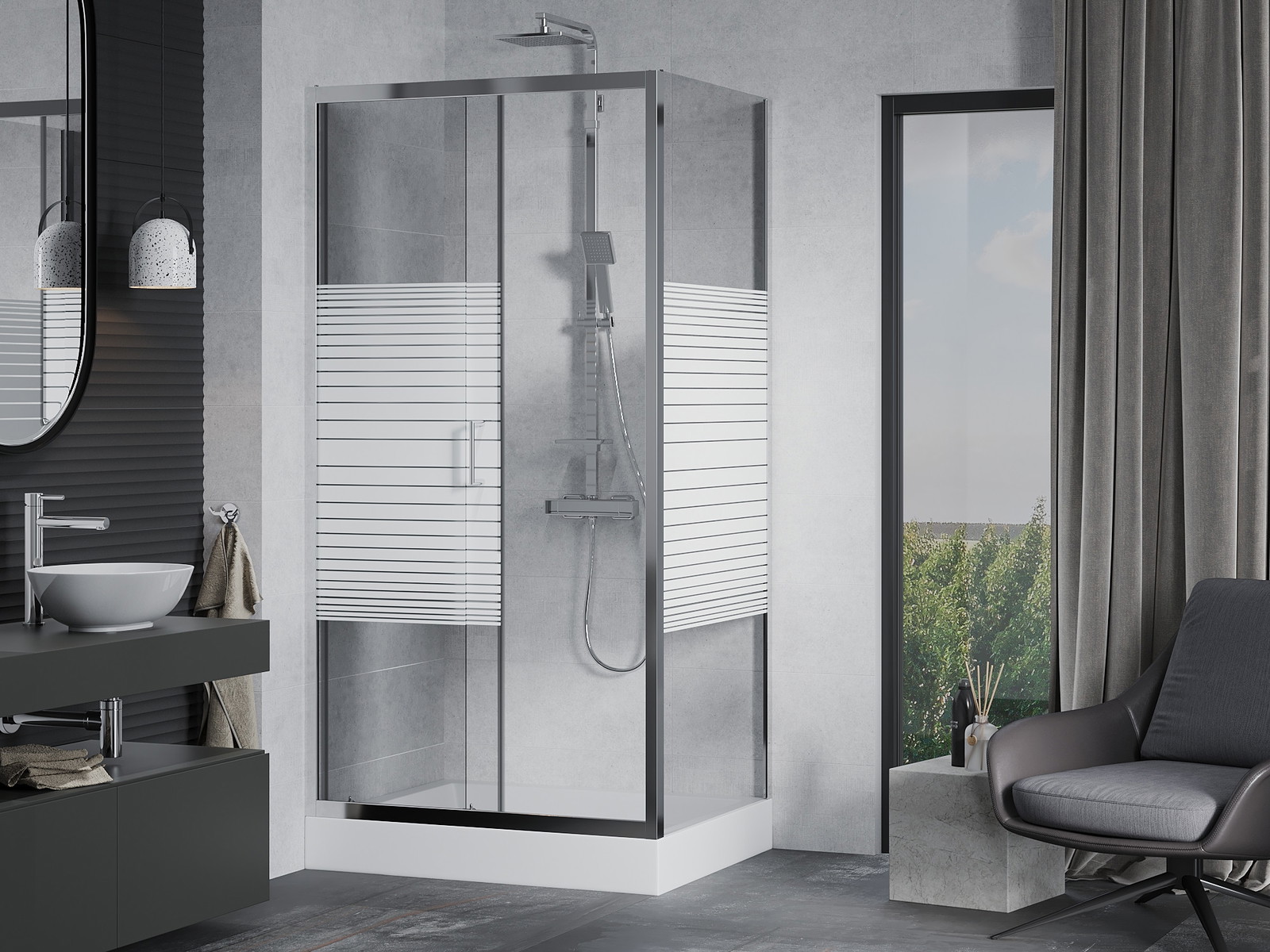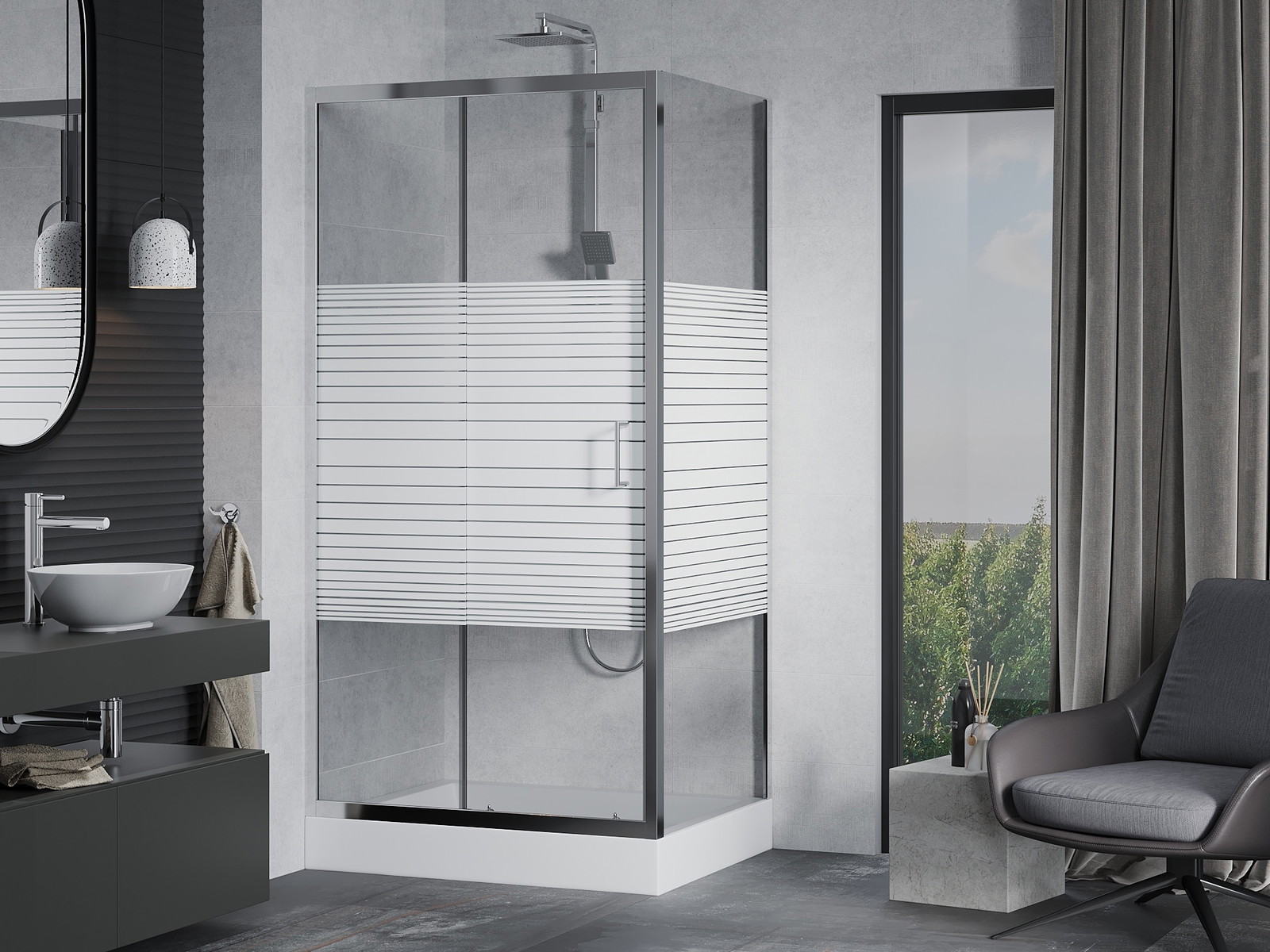 Mexen Apia slankioji dušo kabina 120 x 90 cm, baltos juostos, chromuotas + Rio padėklas - 840-120-090-01-20-4510