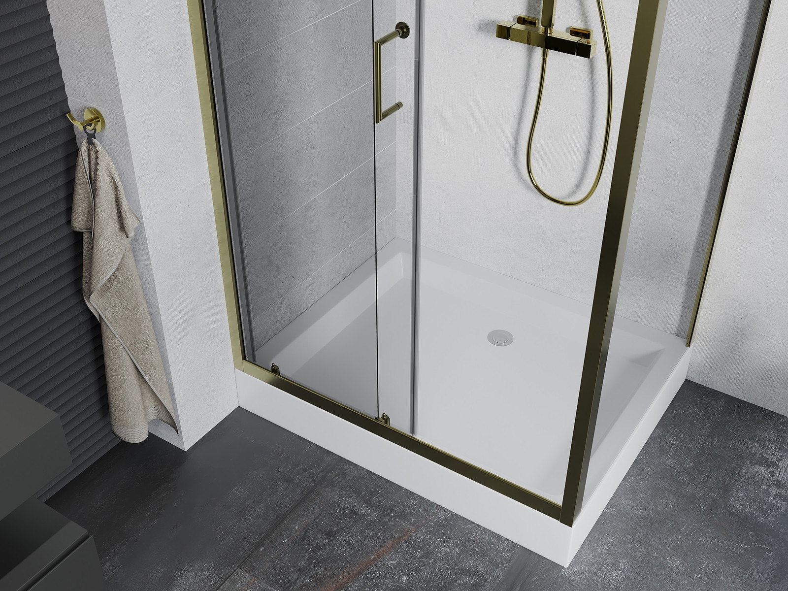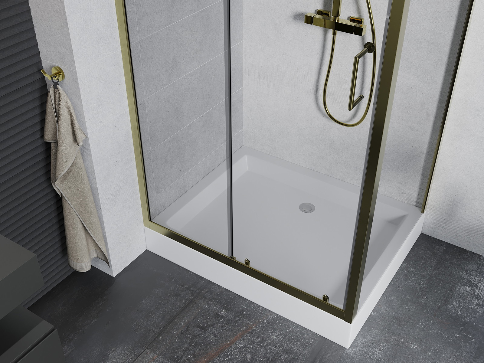 Mexen Apia stumiama dušo kabina 120 x 90 cm, permatoma, auksinė + Riopadėklas - 840-120-090-50-00-4510