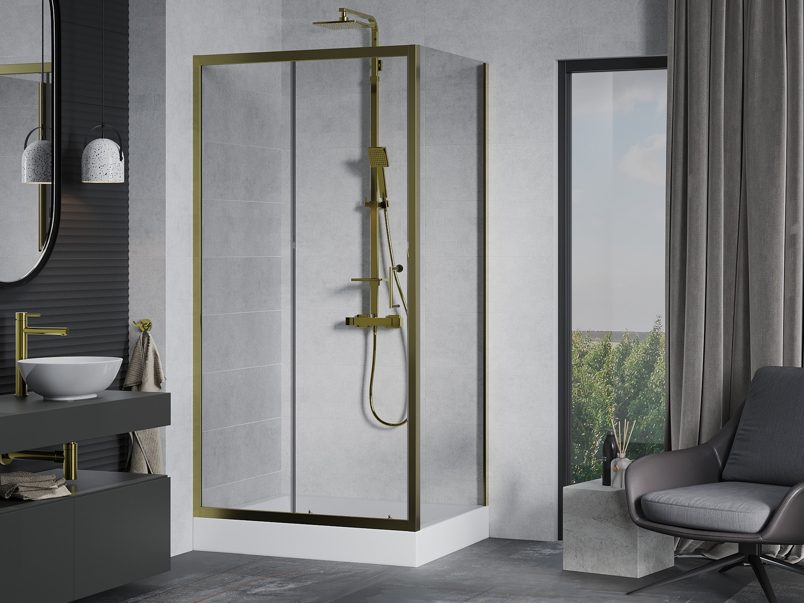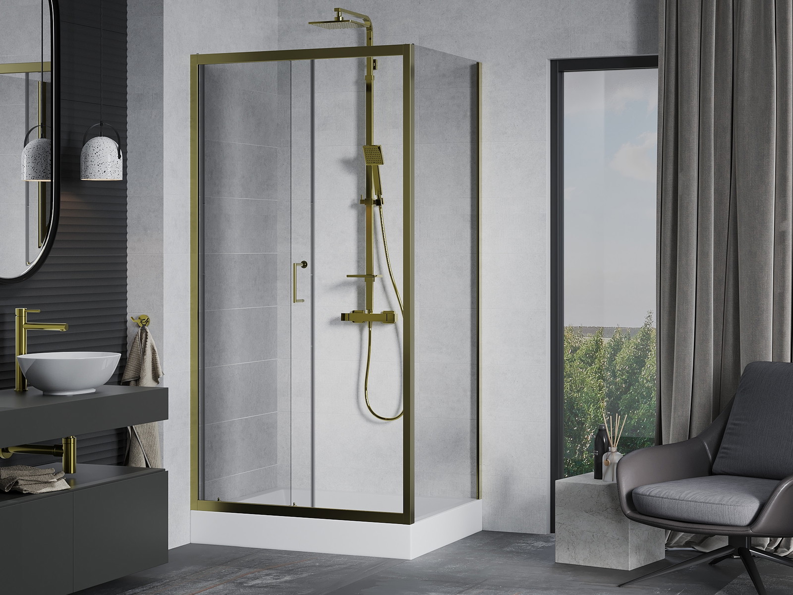 Mexen Apia tai dušo kabina, kuri sujungia eleganciją su funkcionalumu. Jos dydis 120x90 cm užtikrina komfortą maudynių metu, o stumiamos durys leidžia lengviau patekti vidun. Permatomas 6 mm storio grūdintas stiklas ir auksinė apdaila suteikia prabangos kiekvienai voniai. Kabina turi visuotinio montavimo galimybes, pločio reguliavimą ir sienos nelygumų kompensavimą. Riopadėklas pagamintas iš sanitarinio akrilo, yra baltas ir stačiakampis išmatavimų 120x90x14 cm, sustiprintas dugnas bei sifoninė anga valoma iš viršaus yra papildomi privalumai.