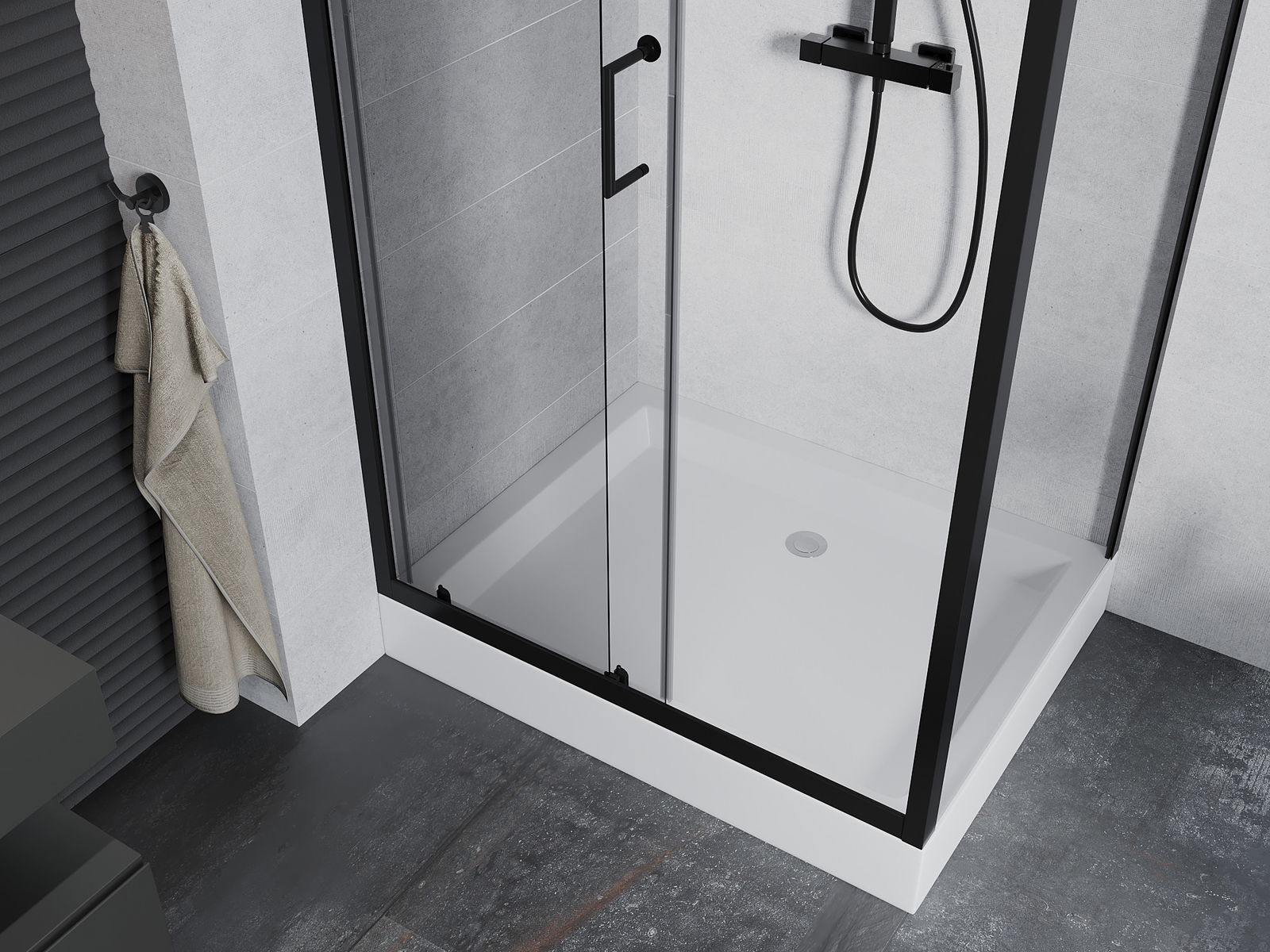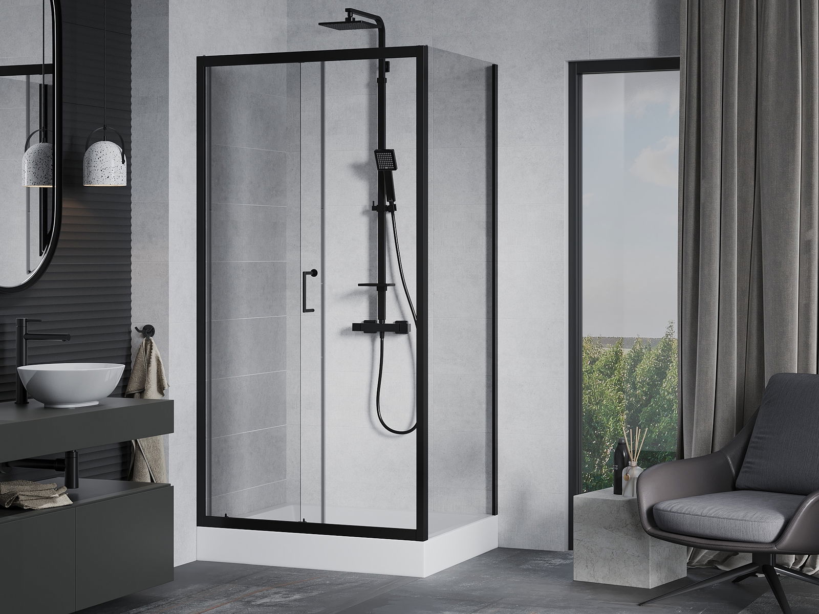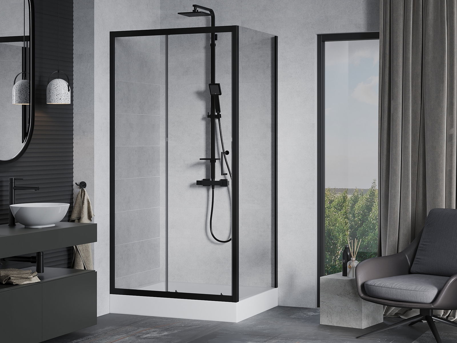 Mexen Apia stumdomoji dušo kabina 100 x 80 cm, skaidri, juoda + Rio - 840-100-080-70-00-4510 padėklas