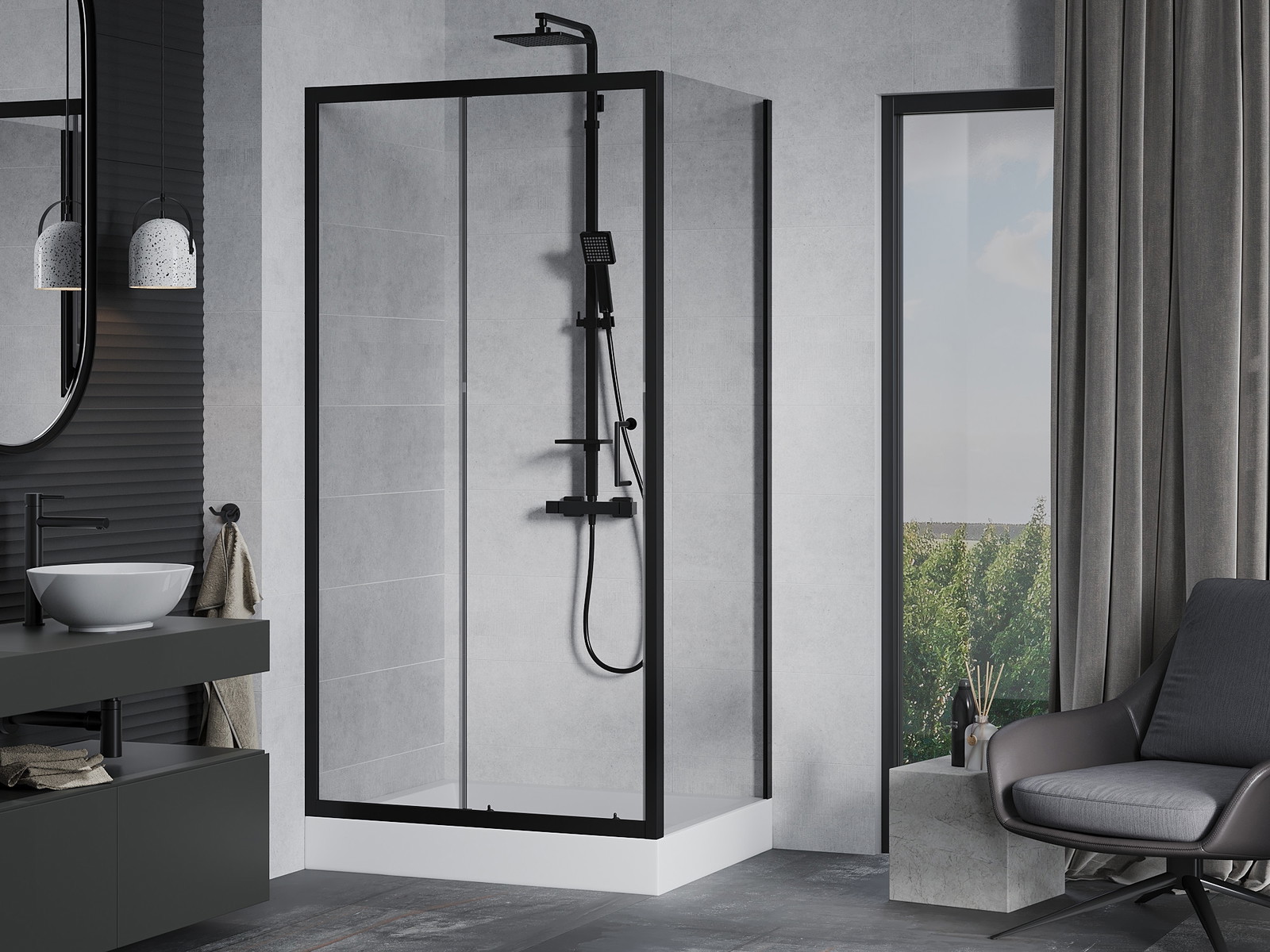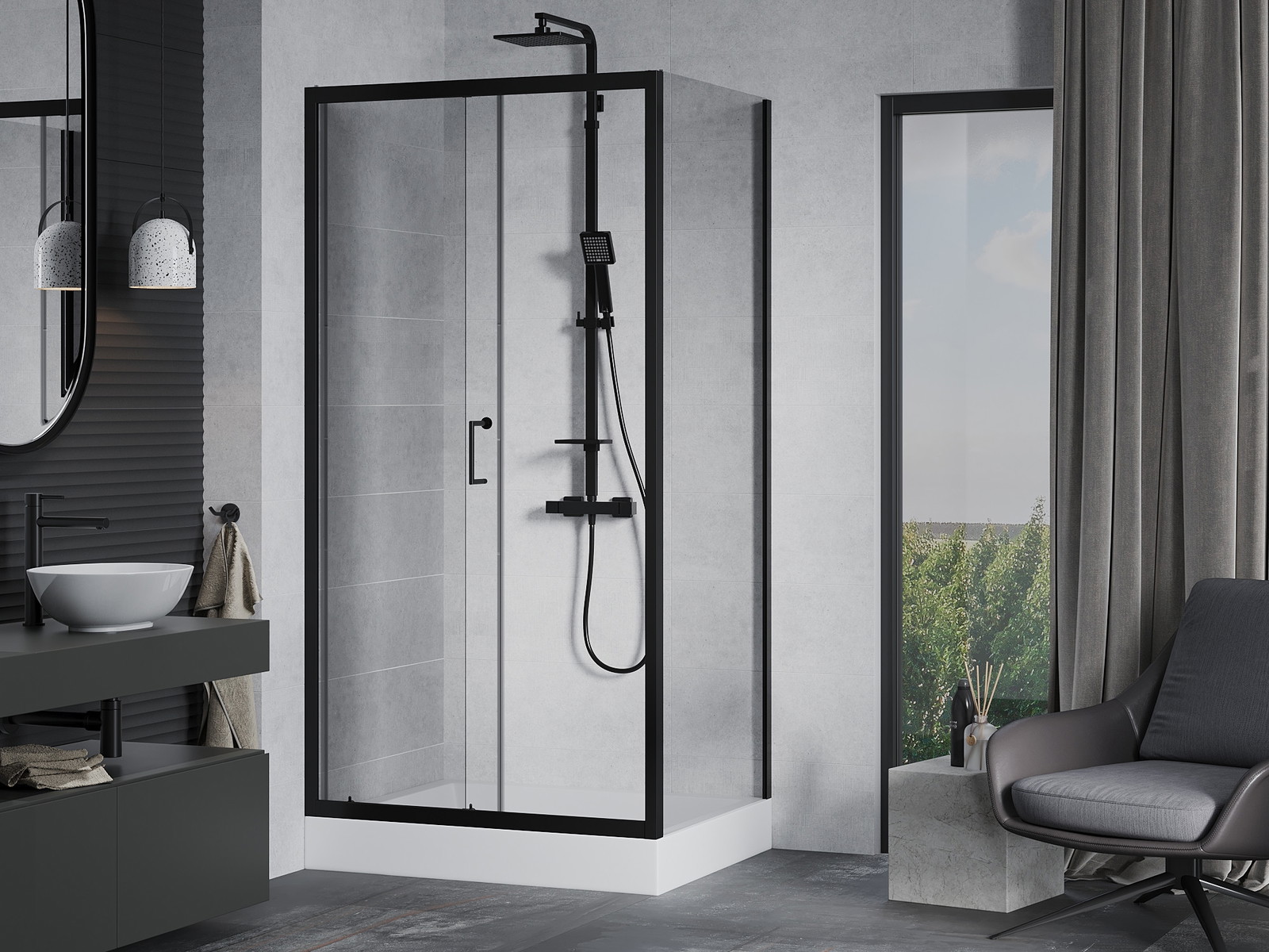 Mexen Rio kvardratinė dušo kabina 90 x 90 cm, permatoma, juoda - 860-090-090-70-00