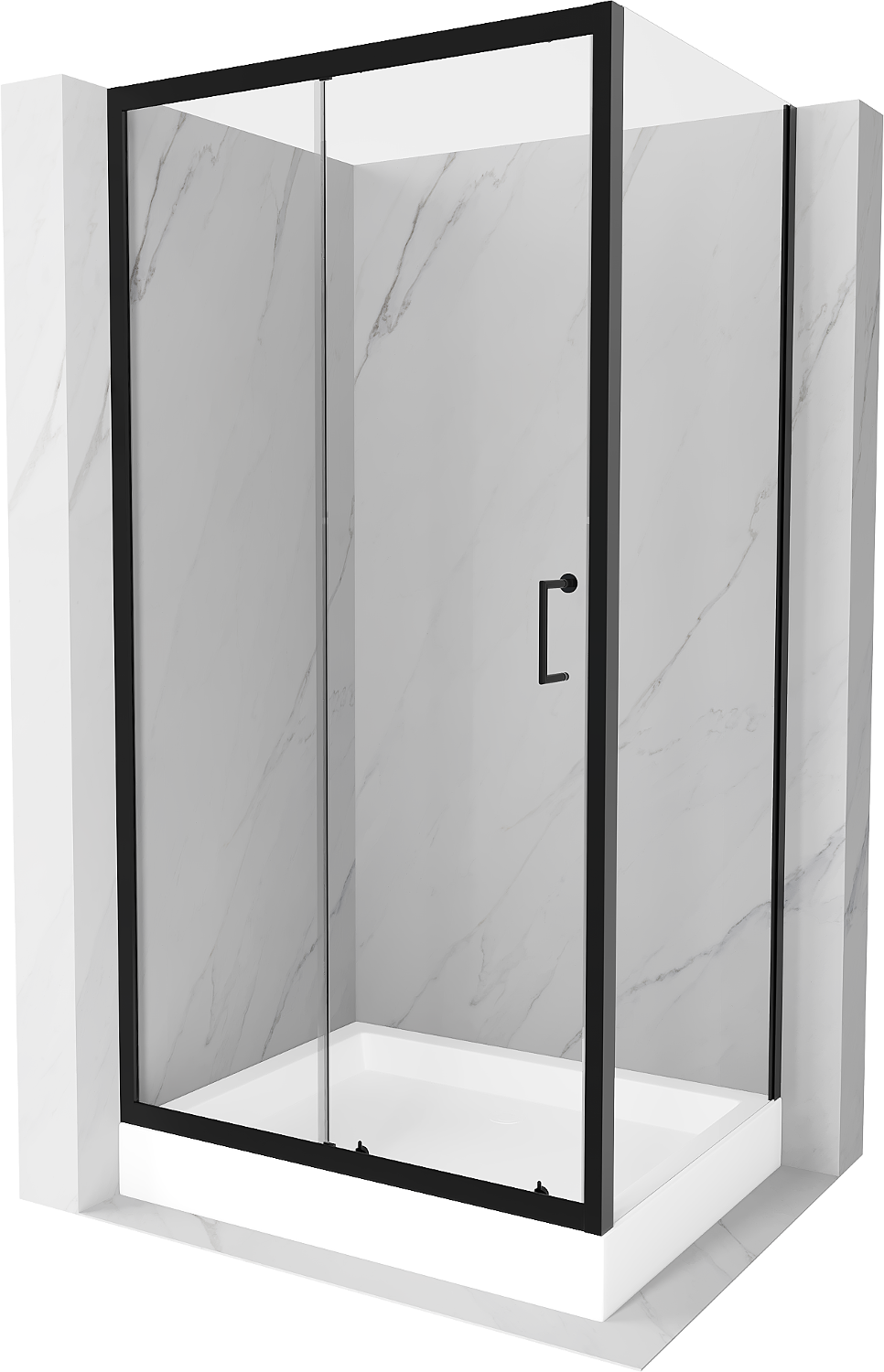 Mexen Apia stacionari dušo kabina 120 x 80 cm, skaidrus, juoda + padėklas Rio - 840-120-080-70-00-4510