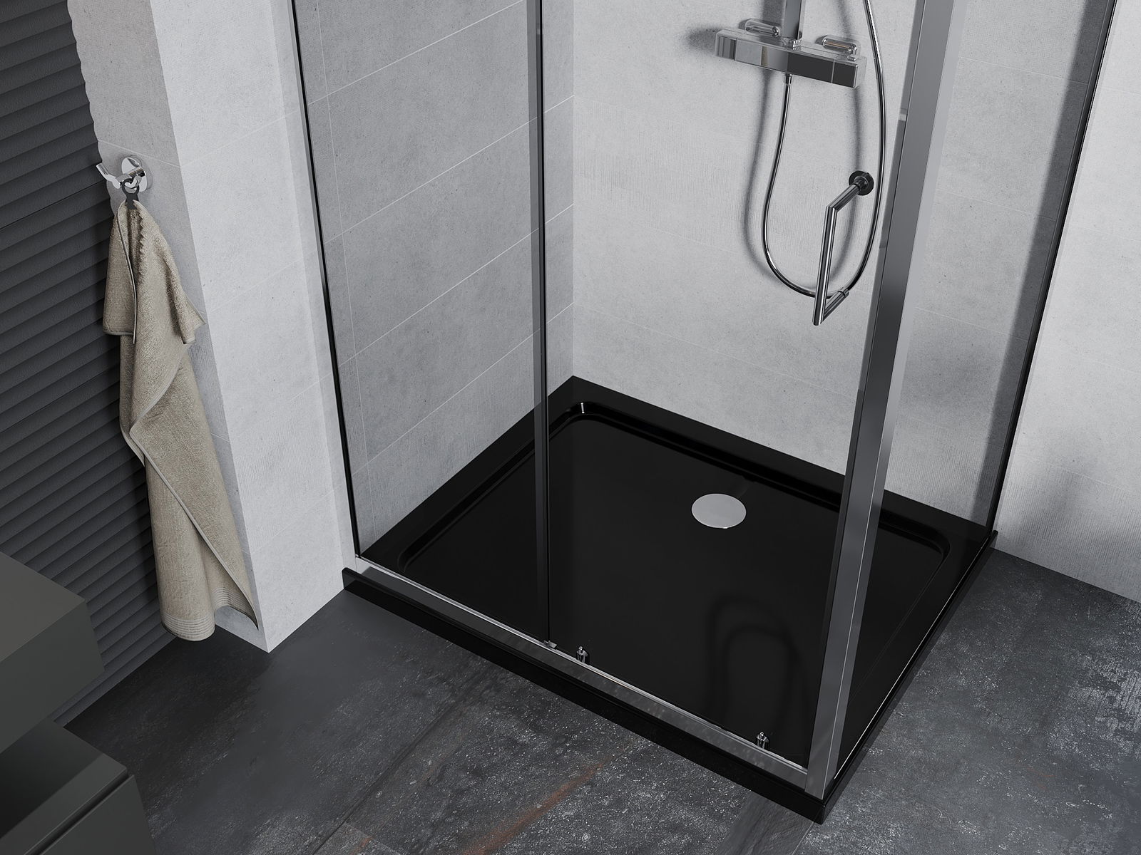Mexen Apia stiklinė dušo kabina, stumdoma 110 x 70 cm, permatoma, chromas + plokščias padėklas, juodas - 840-110-070-01-00-4070