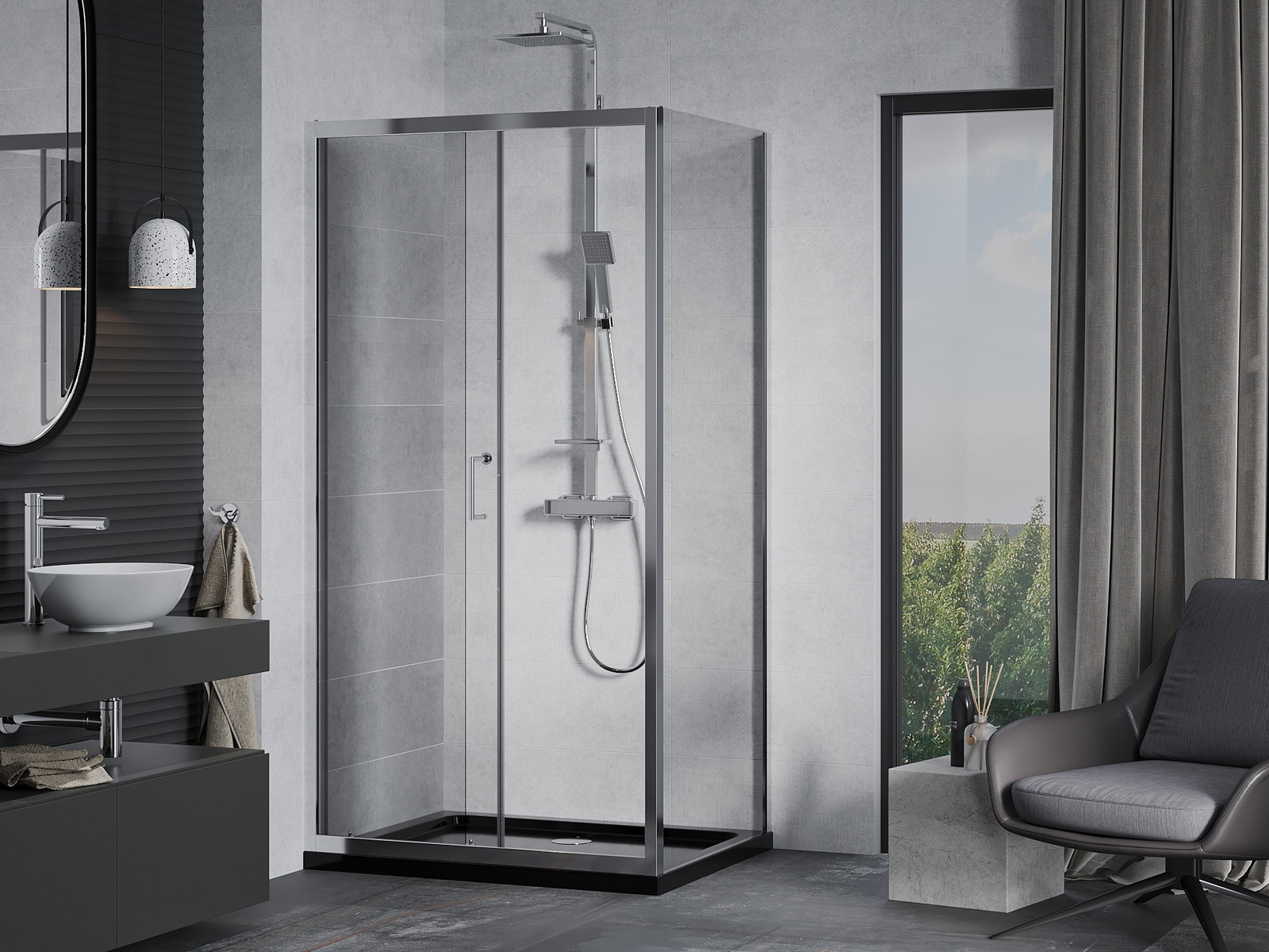 Mexen Apia yra elegantiška stumdomos dušo kabina, kurios matmenys yra 120x70 cm, idealiai tinkanti moderniems vonios kambariams. Skaidrus, grūdintas 6 mm stiklas ir chromuota apdaila užtikrina estetišką išvaizdą. Universalus montavimas, galimybė reguliuoti plotį ir kompensuoti sienų nelygumus garantuoja pritaikymą bet kokiai erdvei. Juoda Flat padas iš sanitarinio akrilo pasižymi stačiakampiu dizainu ir sustiprintu dugnu. Komplekte taip pat yra švariai valomas viršutinio valymo sifonas, kas palengvina priežiūrą.