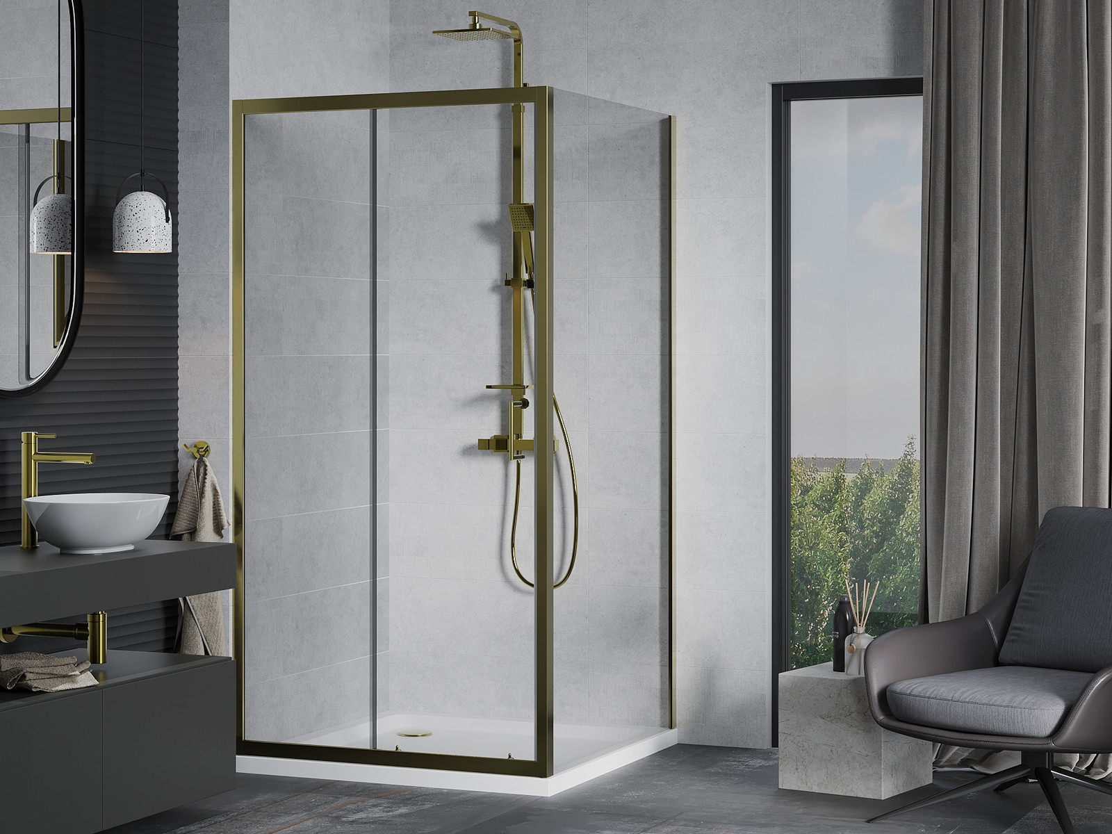 Dušo kabina Mexen Apia yra idealus sprendimas šiuolaikinėms vonios kambariams, derinant eleganciją su funkcionalumu. Dėl 90x90 cm dydžio ir 190 cm aukščio ji puikiai tinka daugumai interjerų. Auksinė apdaila suteikia jai prabangos pobūdį, o skaidrus grūdintas stiklas, kurio storis 6 mm, užtikrina patvarumą ir estetiką. Kabina yra su praktiškomis stumdomomis durimis ir aliuminio profiliu su valymo paviršiumi. Plotis reguliavimas ir montavimo galimybė ant Flat dušo padėklo arba plytelėmis garantuoja universalumą. Sanitarinis akrilo dušo padėklas, sustiprintas, su viršuje valomu sifonu, užbaigia visumą, siūlo šiuolaikišką išvaizdą su balta apdaila ir auksine kamšteliu.