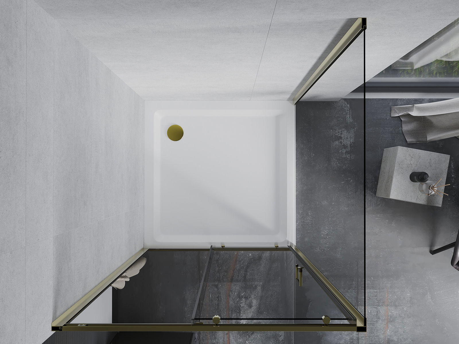 Mexen Apia stumdoma dušo kabina 100 x 100 cm, permatoma, auksinė + plokščias padėklas, baltas - 840-100-100-50-00-4010G
