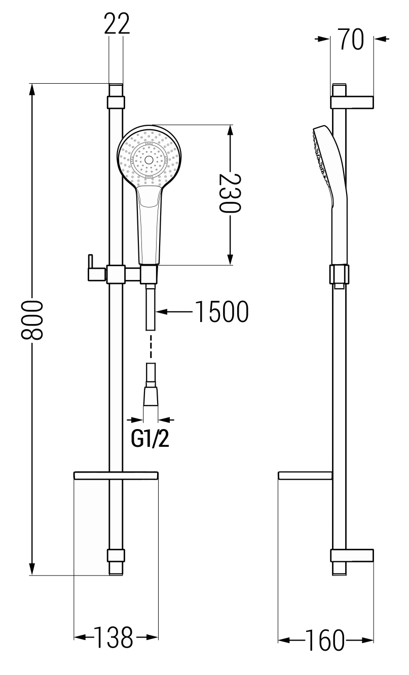 Mexen DQ05 dušo komplektas su slidžiu laikikliu, juodas - 785054581-70