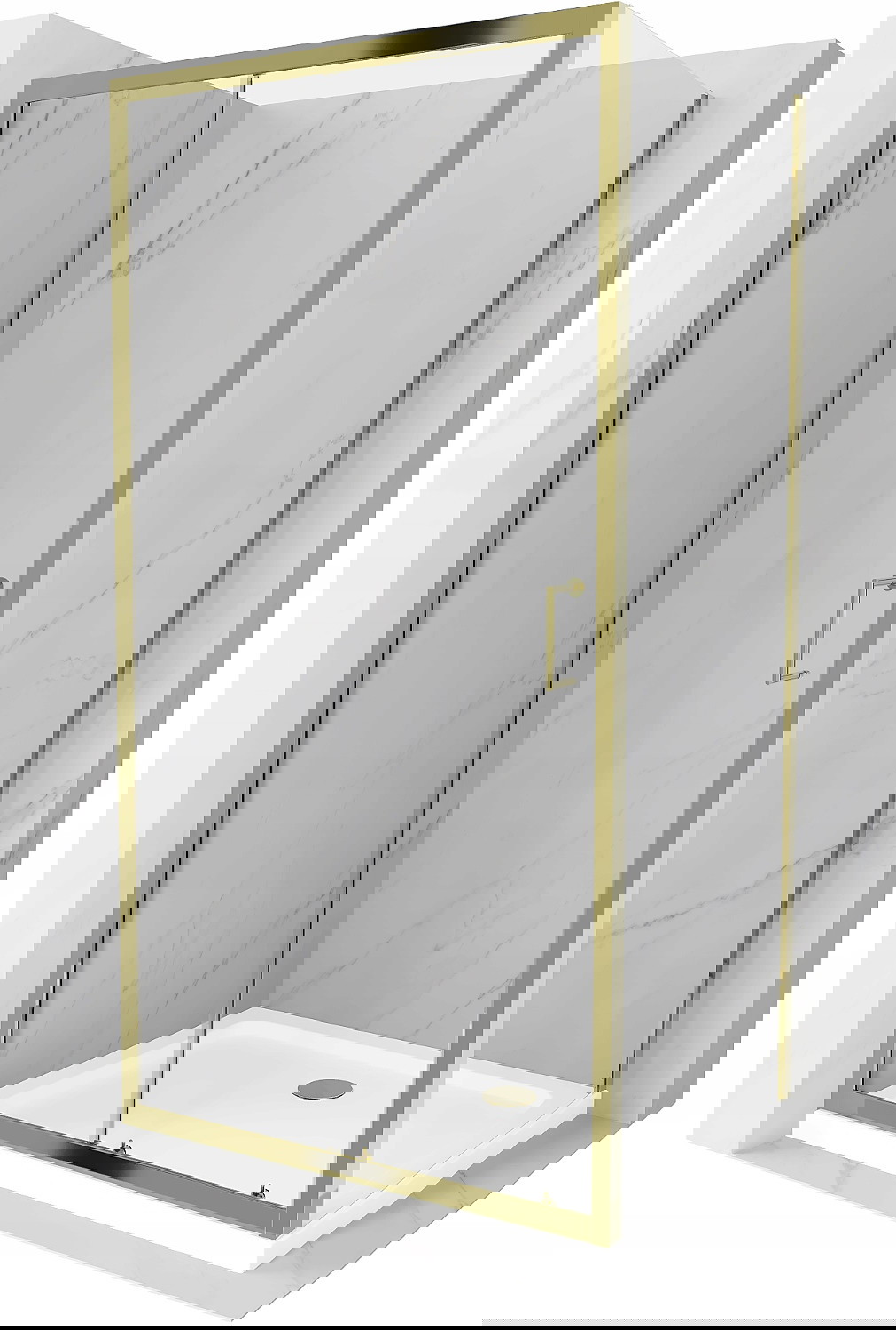 Mexen Apia slankiojama dušo kabina 130 x 100 cm, permatoma, auksinė + Flat dušo padėklas, baltas - 840-130-100-50-00-4010G