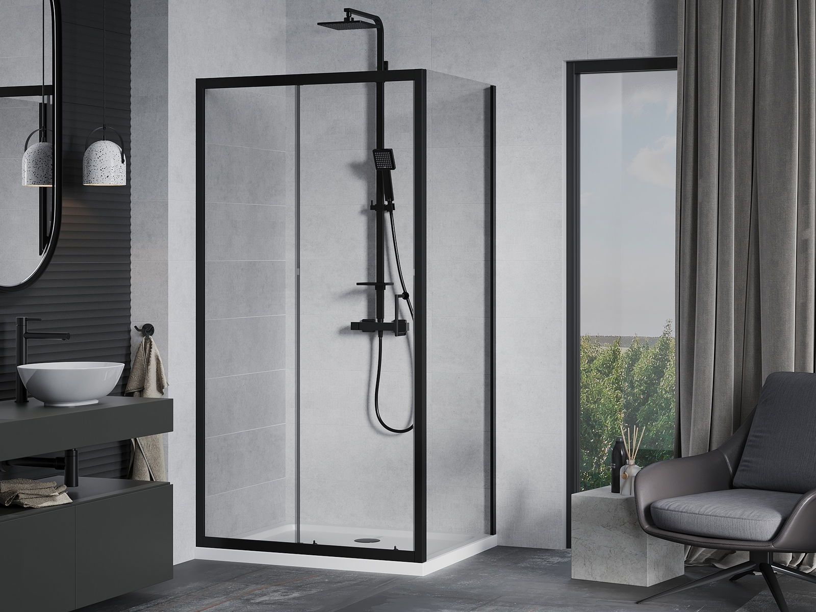 Mexen Apia stumdomas dušo kabinas 100 x 80 cm, permatomas, juodas + plokščias padėklas, baltas- 840-100-080-70-00-4010B