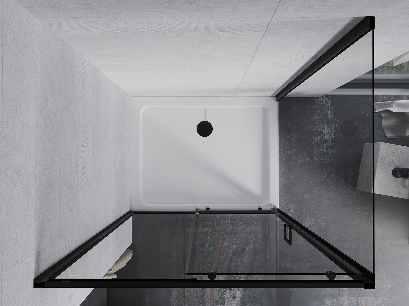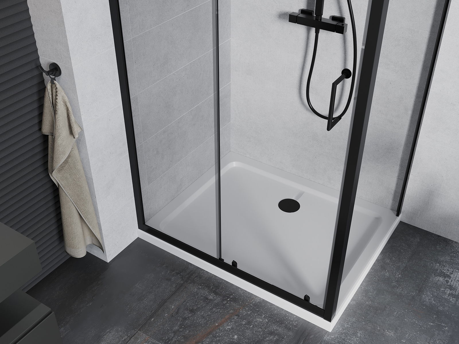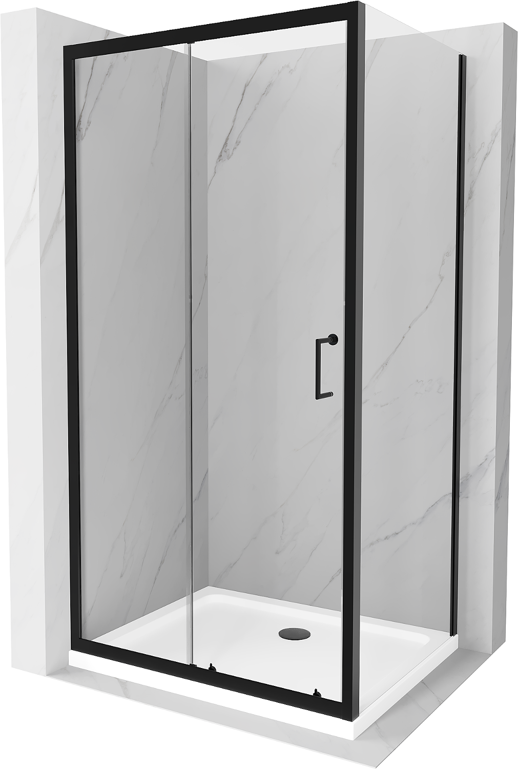 Mexen Apia stumdomas dušo kabinas 140 x 70 cm, skaidrus, juodas + plokščias padėklas, baltas- 840-140-070-70-00-4010B