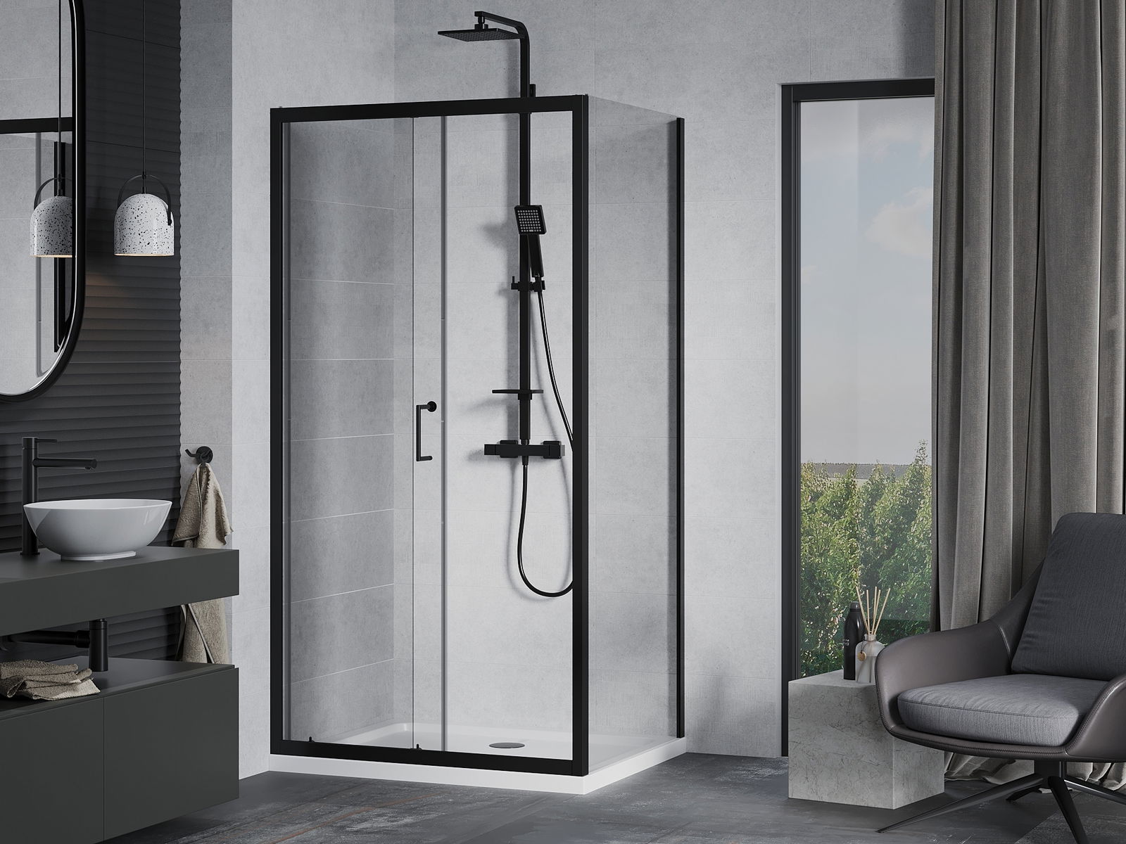 Mexen Rio kvardratinė dušo kabina 90 x 90 cm, permatoma, juoda - 860-090-090-70-00