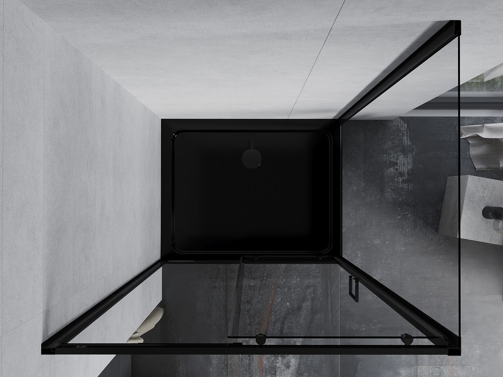 Mexen Apia stumdomo dušo kabina 100 x 80 cm, permatoma, juoda + Flat padėklas, juodas - 840-100-080-70-00-4070B