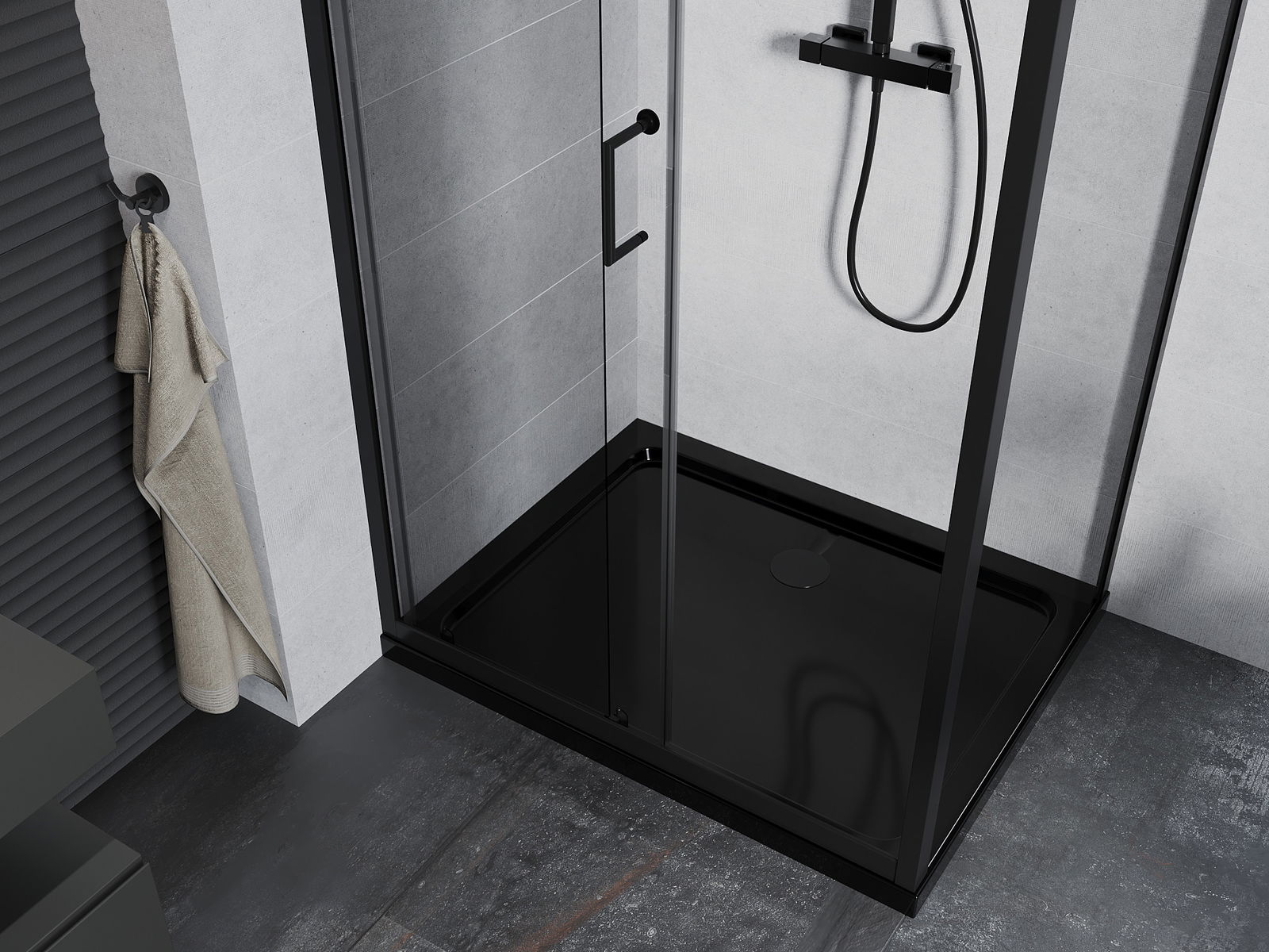 Mexen Apia stumdomas dušo kabina 120 x 70 cm, skaidri, juoda + Flat padėklas, juodas - 840-120-070-70-00-4070B