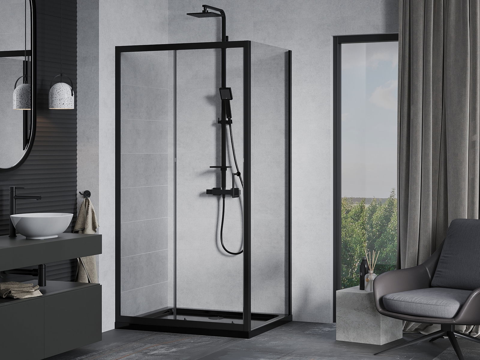Mexen Rio kvardratinė dušo kabina 90 x 90 cm, permatoma, juoda - 860-090-090-70-00
