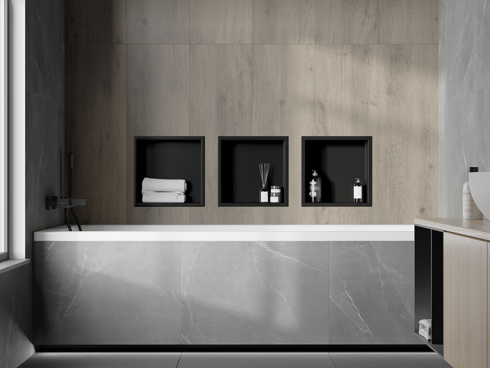 Įdiegimo į sieną arba specialiai paruoštoje pastate galimybė. Tai ypač modernus ir funkcinis sprendimas, leidžiantis sutaupyti vietos ir suderinti produktą su interjero estetika ir sukurti nuoseklią kompoziciją.