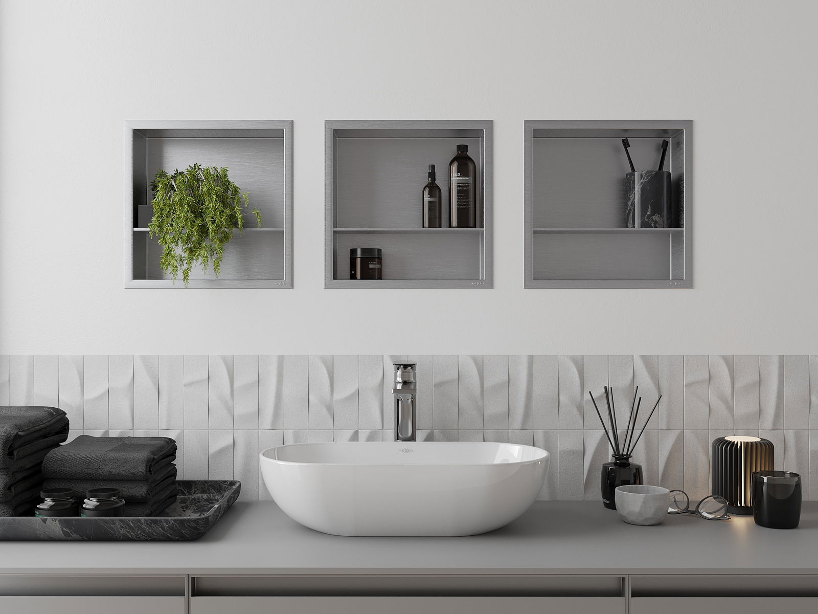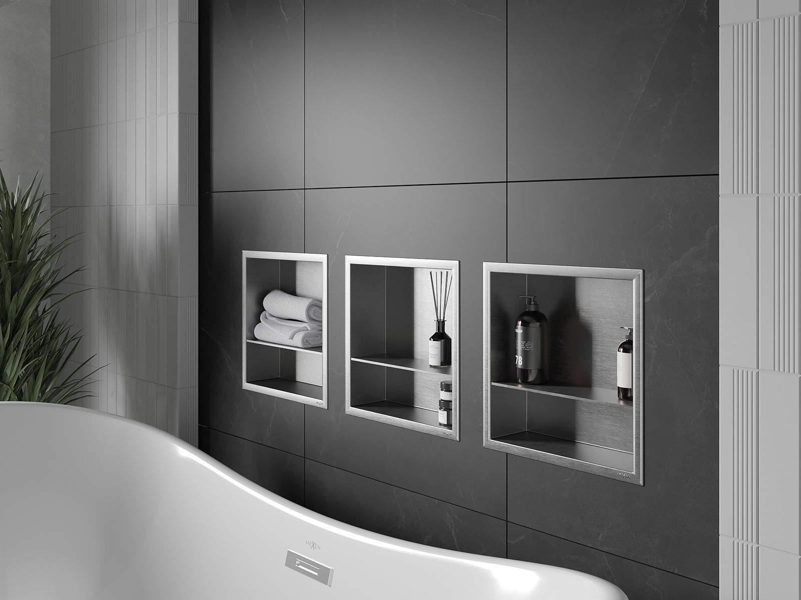 Mexen X-Wall-R įdėklų lentyna su apvadu ir lentyna 30 x 30 cm, inox - 1910303010S