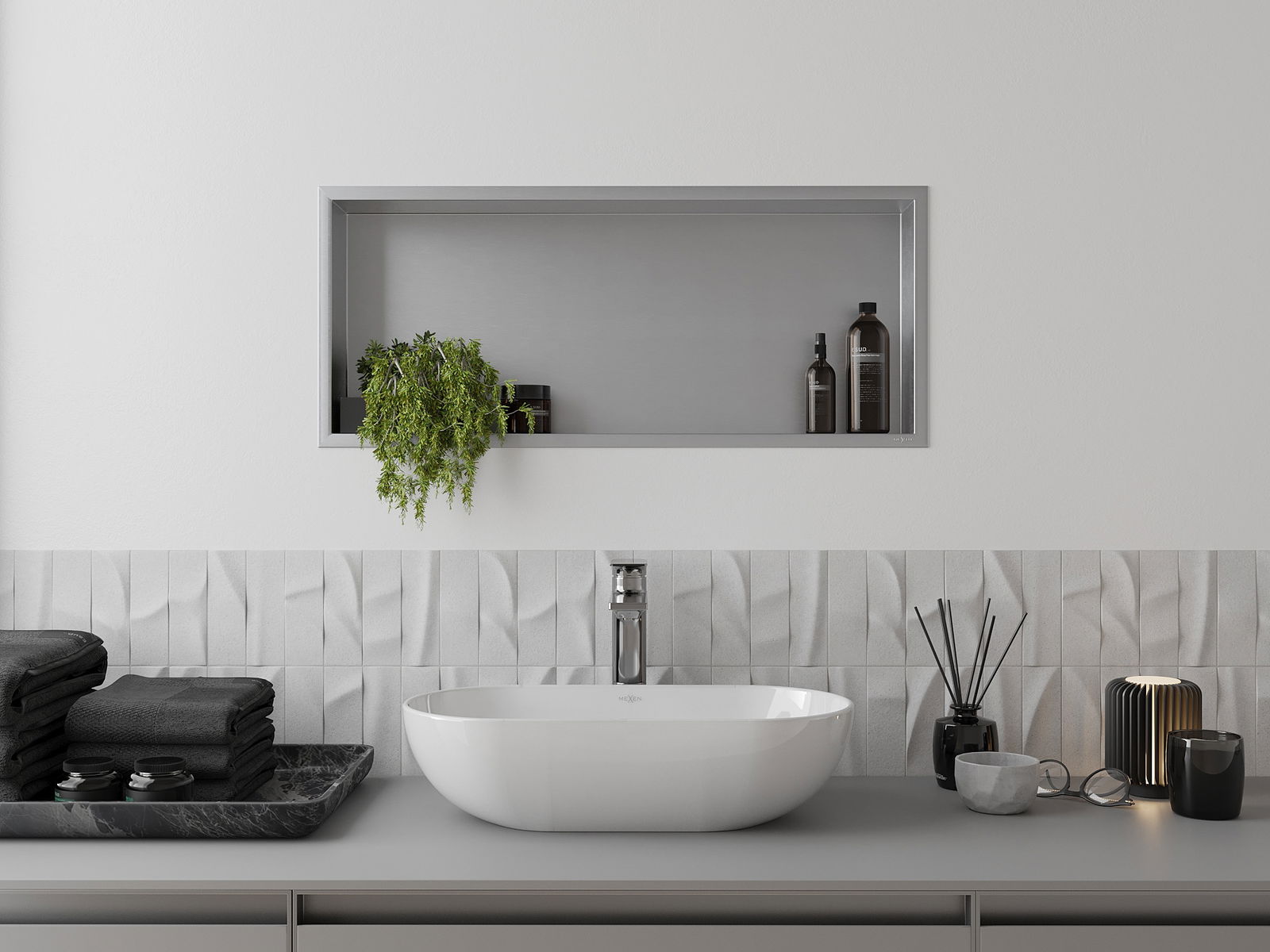 Mexen X-Wall-R įleidžiama lentyna su apvadu 75 x 30 cm, inox - 1910753010