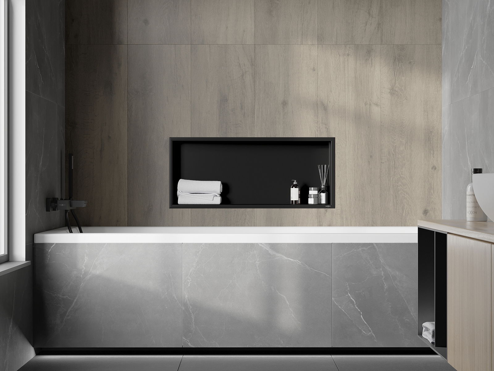 Mexen X-Wall-R nišinė lentyna su apvadu 75 x 30 cm, juoda - 1970753010