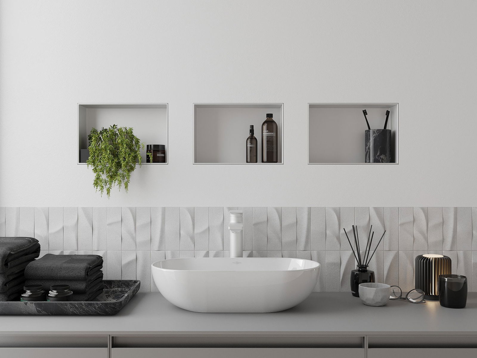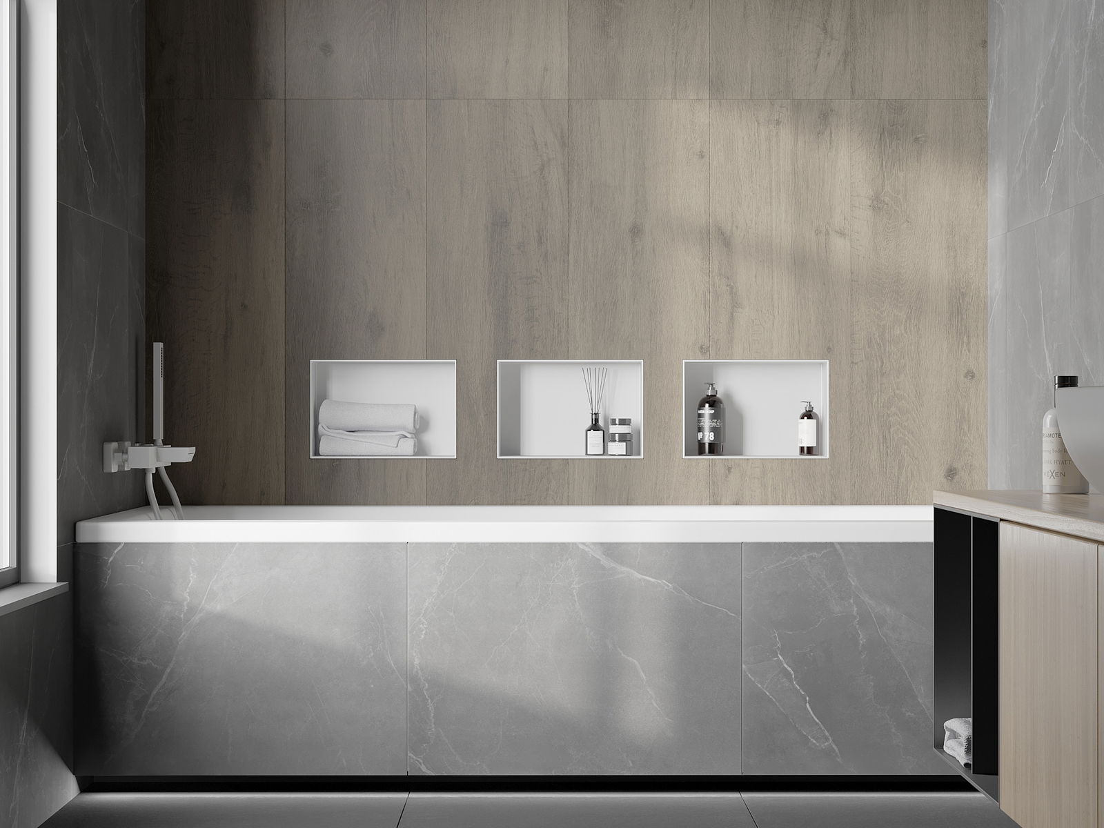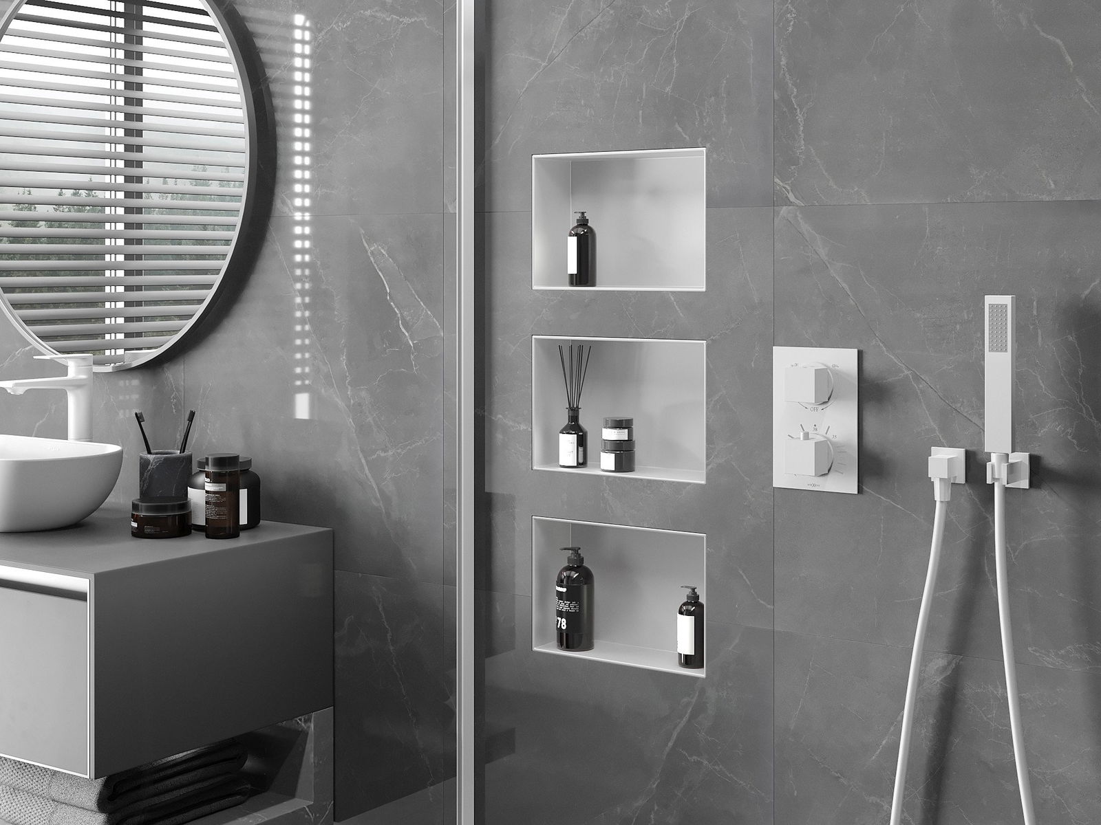 Įdiegimo į sieną arba specialiai paruoštoje pastate galimybė. Tai ypač modernus ir funkcinis sprendimas, leidžiantis sutaupyti vietos ir suderinti produktą su interjero estetika ir sukurti nuoseklią kompoziciją.