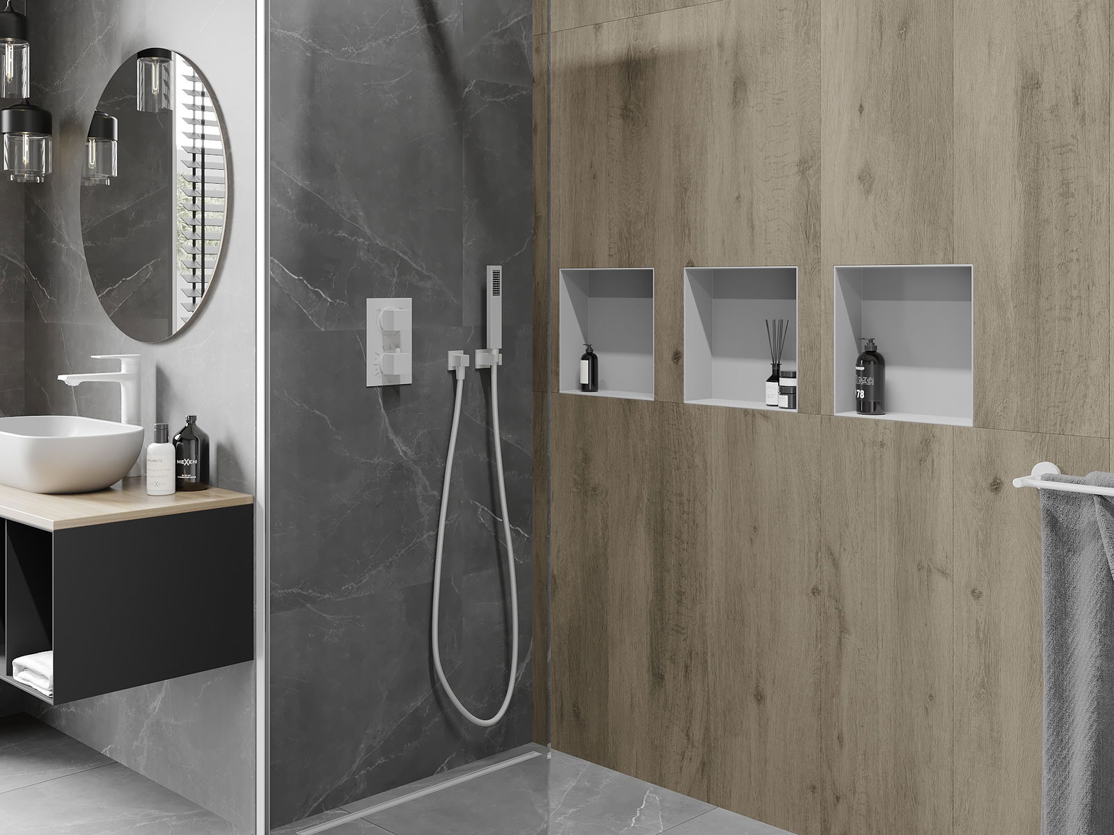 Įdiegimo į sieną arba specialiai paruoštoje pastate galimybė. Tai ypač modernus ir funkcinis sprendimas, leidžiantis sutaupyti vietos ir suderinti produktą su interjero estetika ir sukurti nuoseklią kompoziciją.